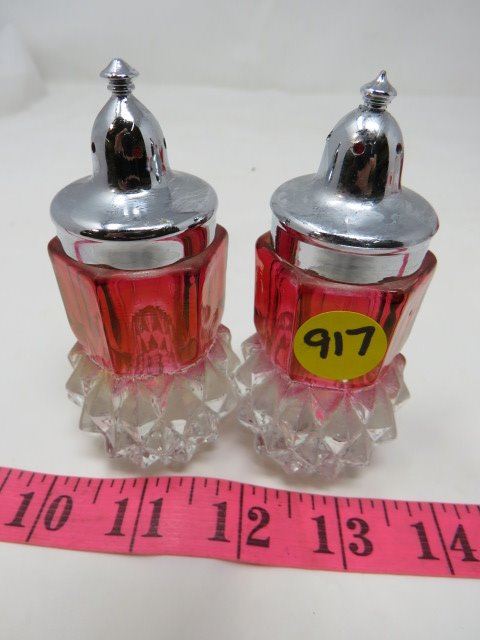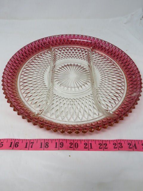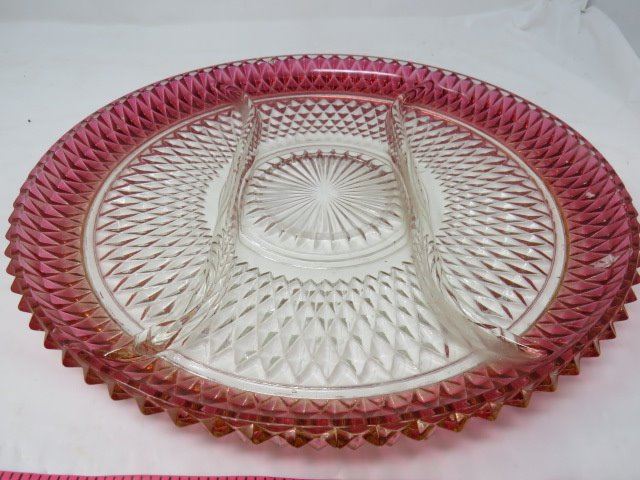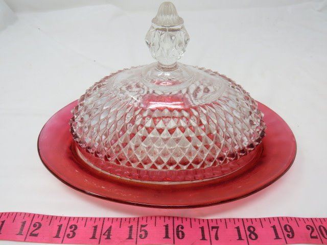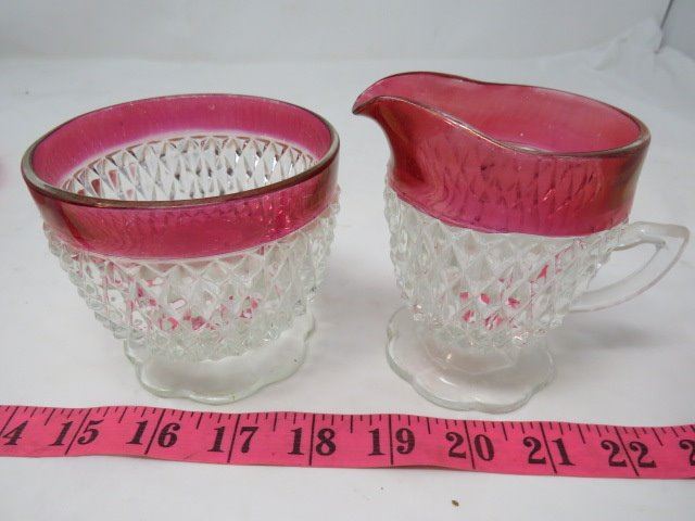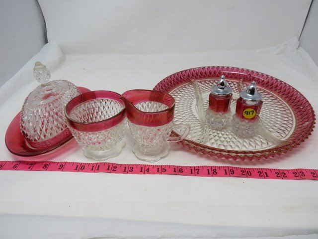 LOT OF INDIANA GLASS ITEMS (SUGAR AND CREAM, SALT AND PEPPER, BUTTER DISH AND SERVING TRAY)