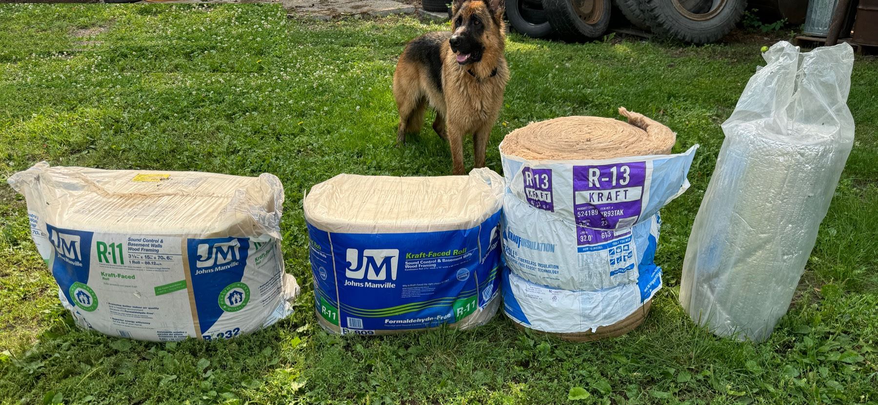 INCLUDING JOHNS MANVILLE R-11; KRAFT R13; GERMAN SHEPARD NOT INCLUDED (BUT ISN'T HE HANDSOME?!)