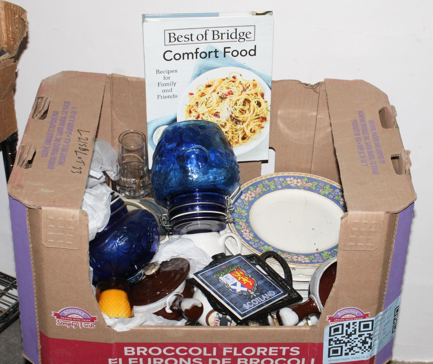 LOT OF JARS, PLATES, SUGAR CREAMER, CANDLE HOLDER
