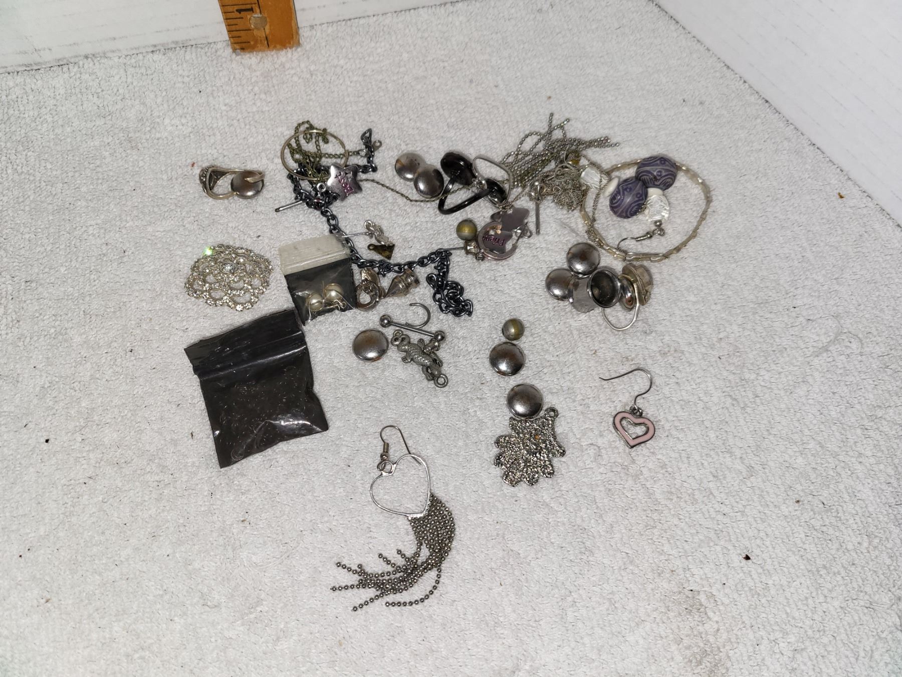 LOT OF JUNK JEWELLERY LOT INCLUDING STERLING SILVER GEMSTONE RING