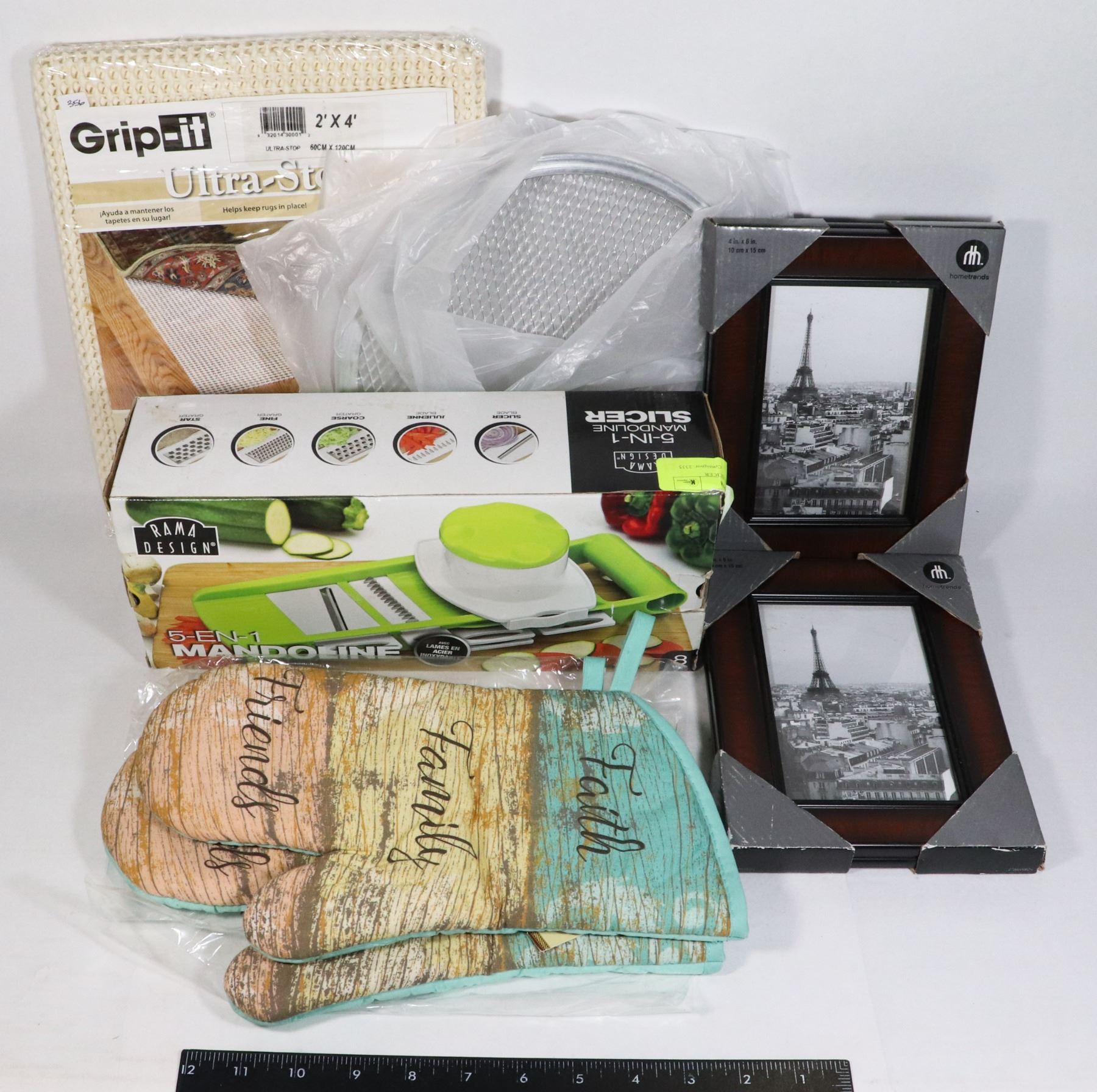TWO NEW PICTURE FRAMES, 2' X 4' NON SLIP CARPET UNDERLAY, AND MORE