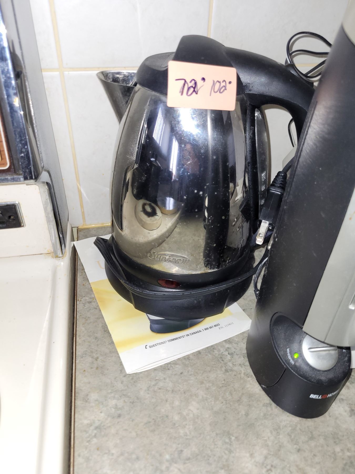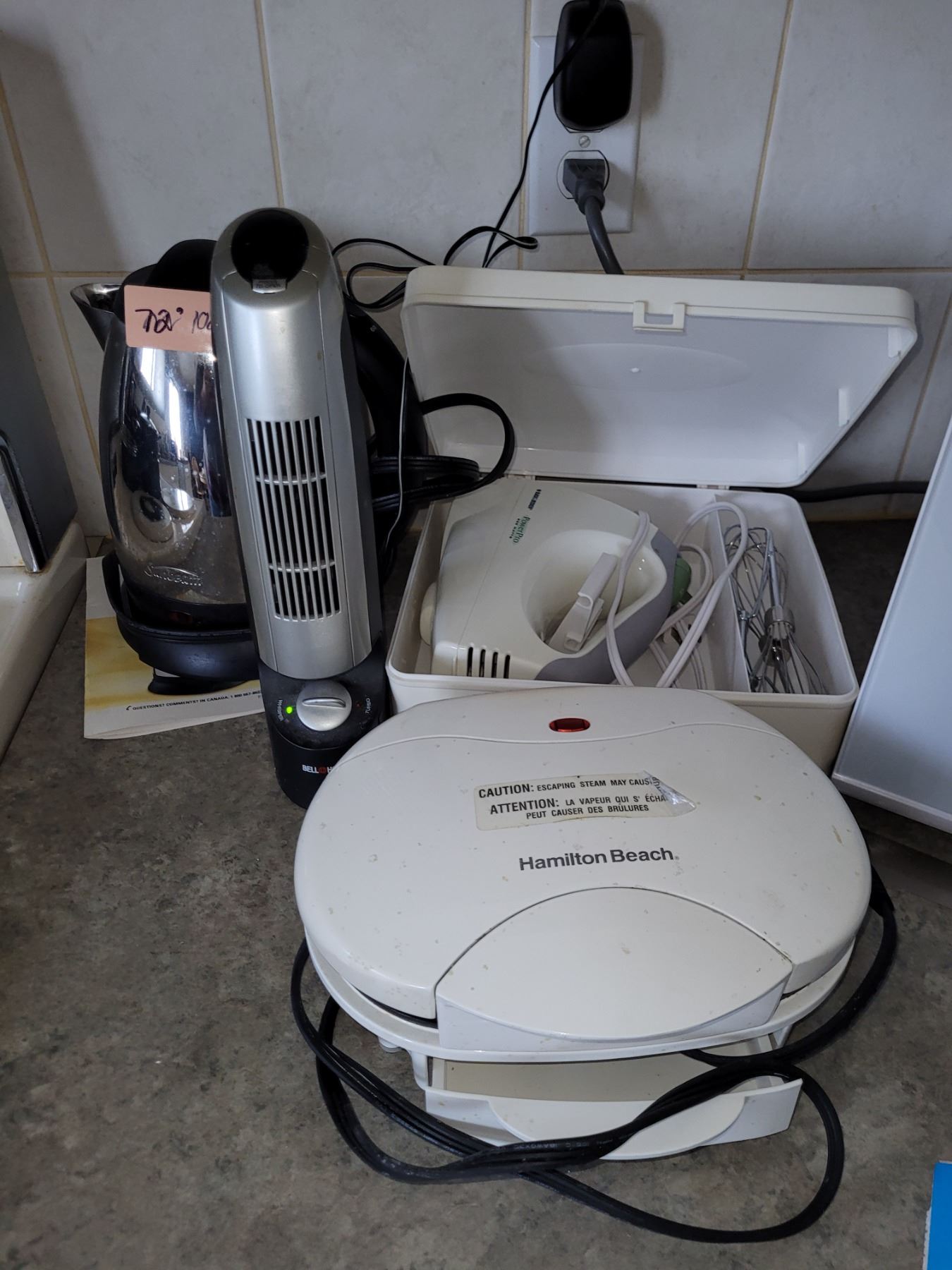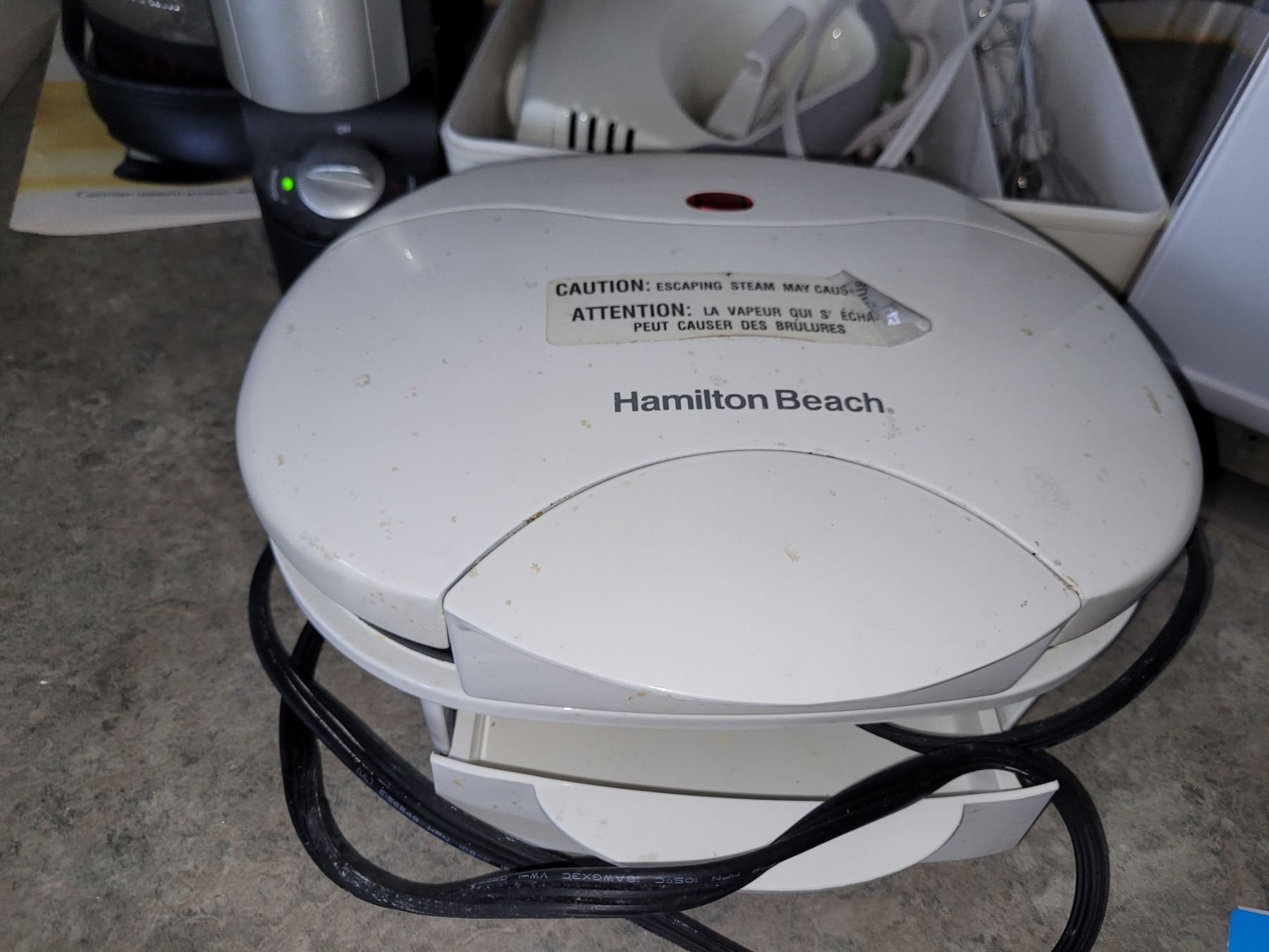 HAMILTON BEACH SNADWICH MAKER, BLACK AND DECKER POWER PRO HAND MIXER IN CASE, SUNBEAM ELECTRIC KETTLE. SEE PICTURES.