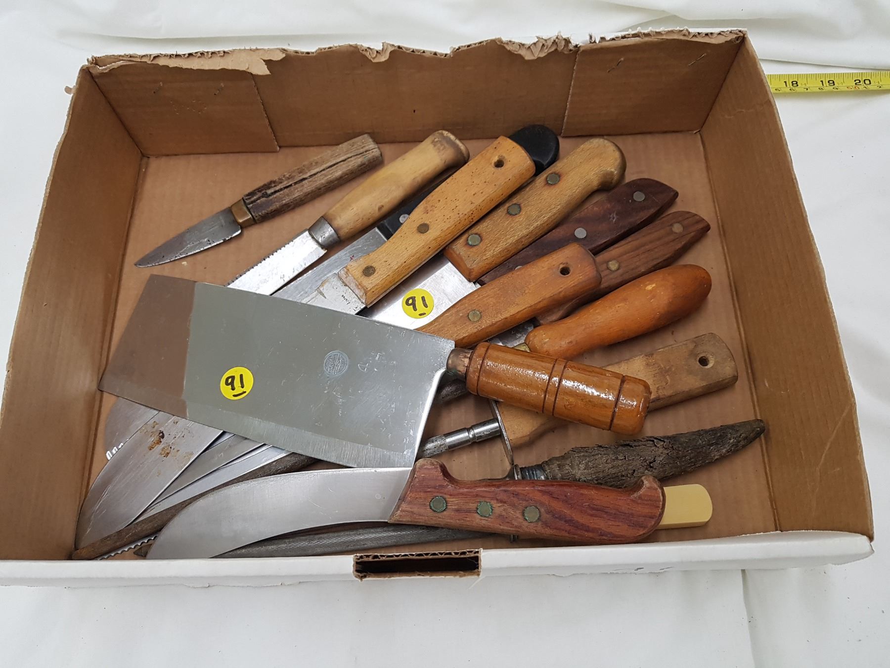 LOT OF KNIVES & CLEAVER & SHARPENER