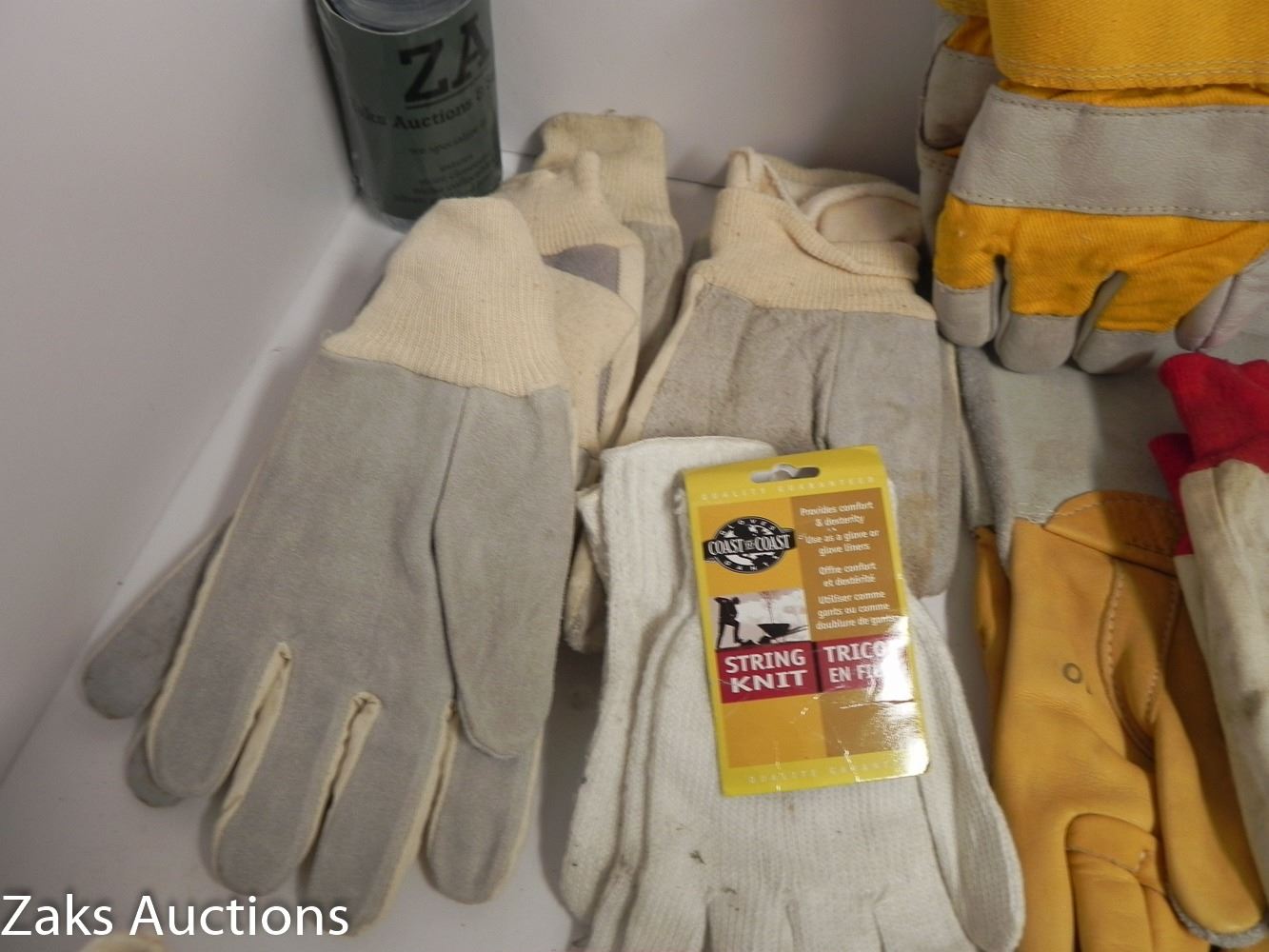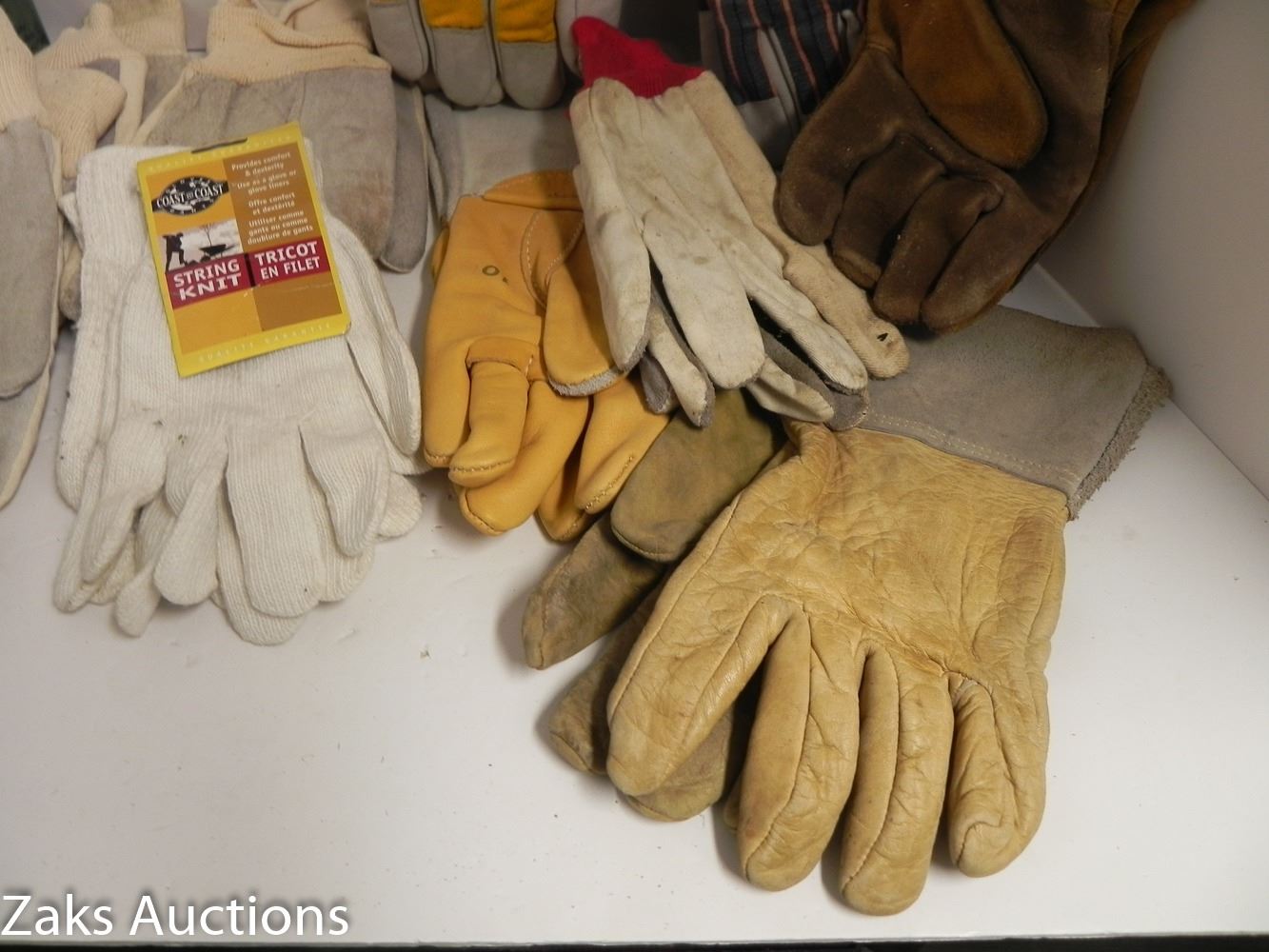 LOT OF LEATHER AND CLOTH WORK GLOVES (MEDIUM SIZE IS OUR ESTIMATE)