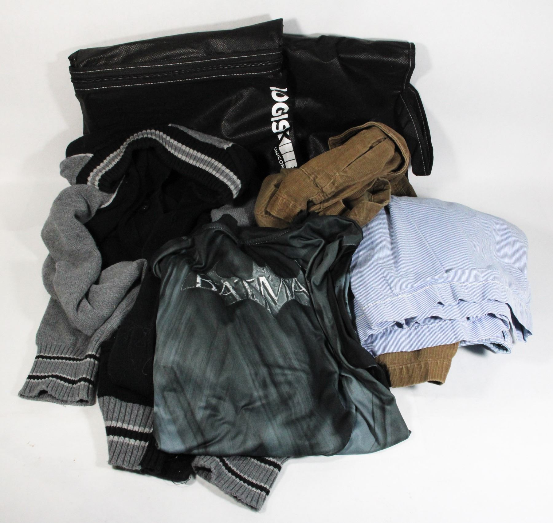 TOPS ARE MEDIUM, SHORTS ARE 32. ALL IN GENTLY USED CONDITION. COMES WITH A SUIT BAG