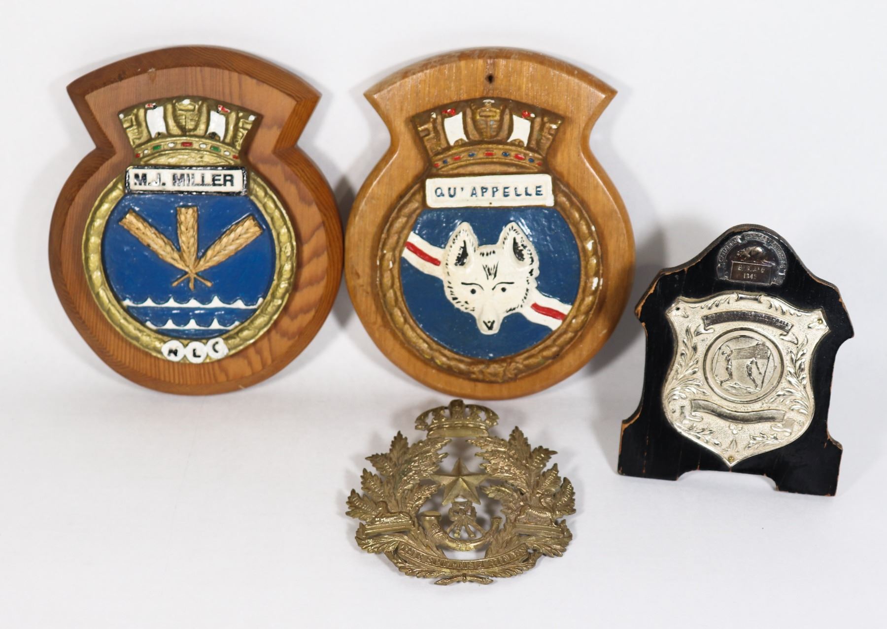 CANADIAN NAVY PLAQUES SMALL, MODERN MADE SCOTTISH RIFLES BADGE PLATE FOR DISPLAY AND 1945 CANADIAN FORCES OVERSEAS RCAF SPORTS PAQUE