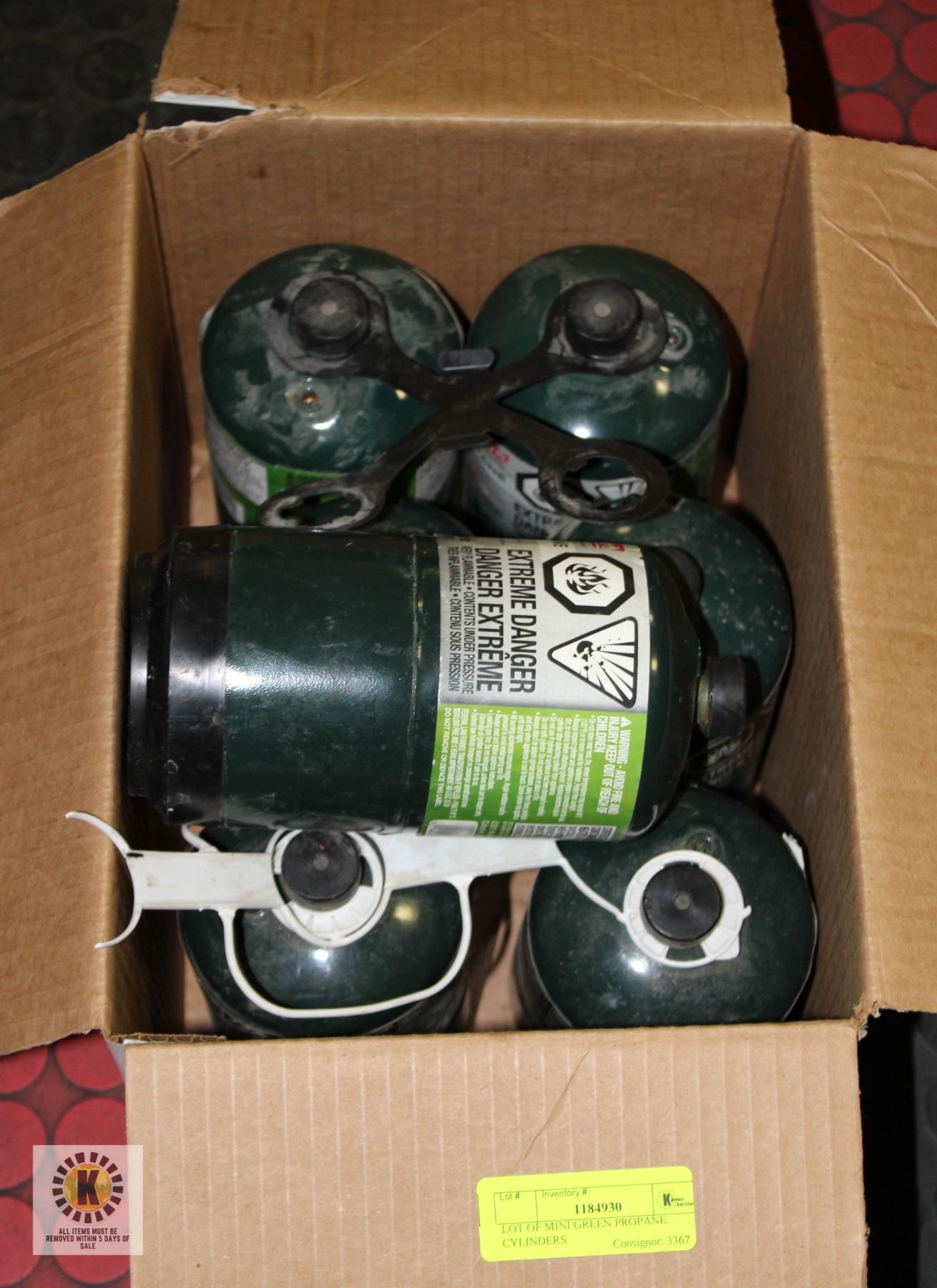 LOT OF MINI GREEN PROPANE CYLINDERS