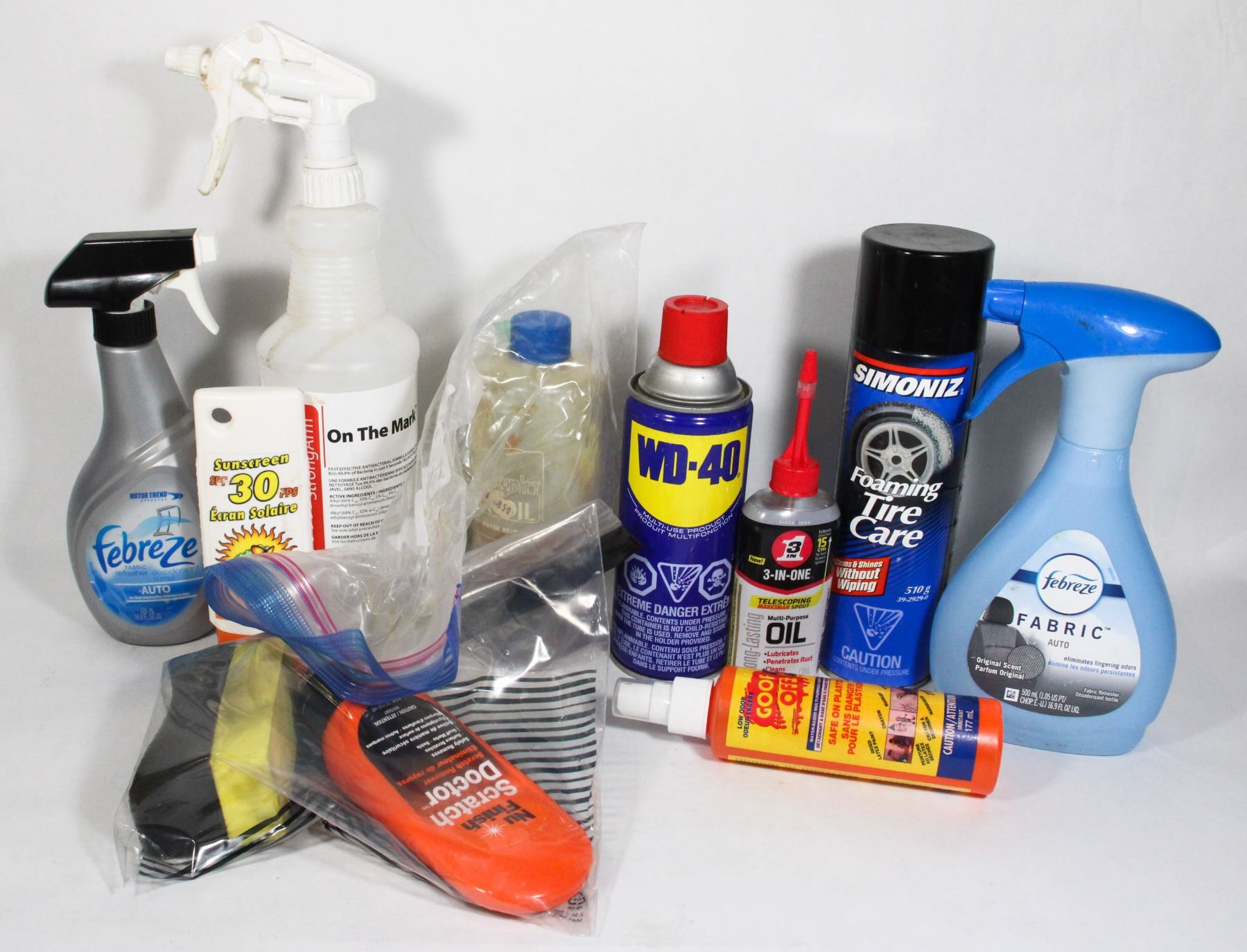 LOT OF MISC. CLEANERS, OILS, AND OTHER ITEMS