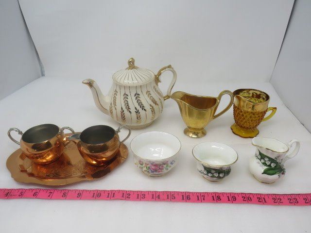 LOT OF MISC COLLECTABLES (2 X CREAM AND SUGAR SETS, 3 X VARIOUS CREAMERS, 1 X SUGAR BOWL, TEAPOT)