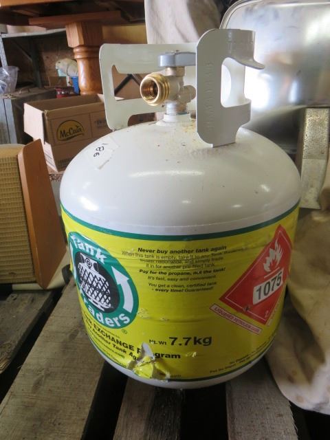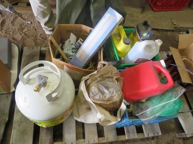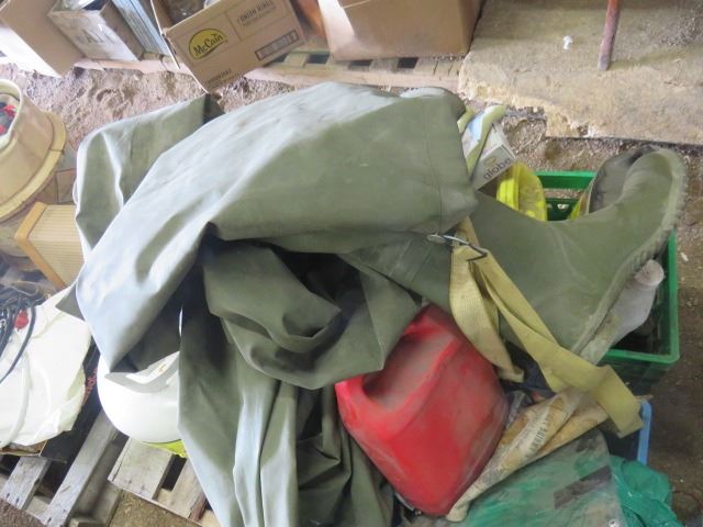 LOT OF MISC ITEMS (2 X HIP WADERS, PROPANE TANK, ETC)
