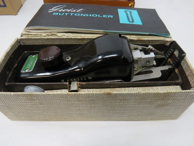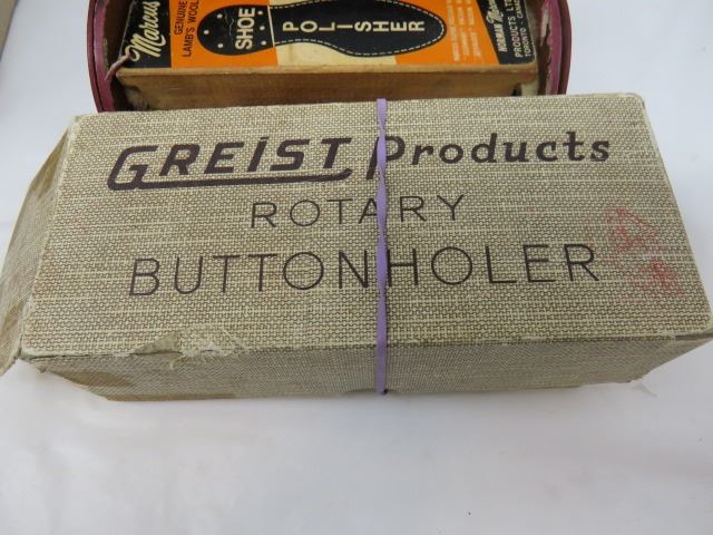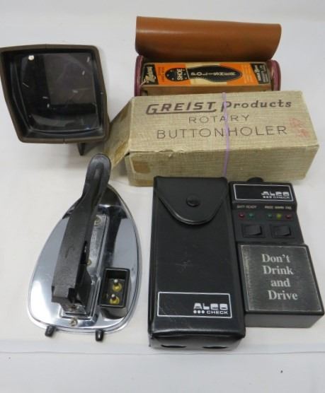 LOT OF MISC ITEMS (ALCO CHECK, TRAVEL IRON, ROTARY BUTTON HOLER, ETC)