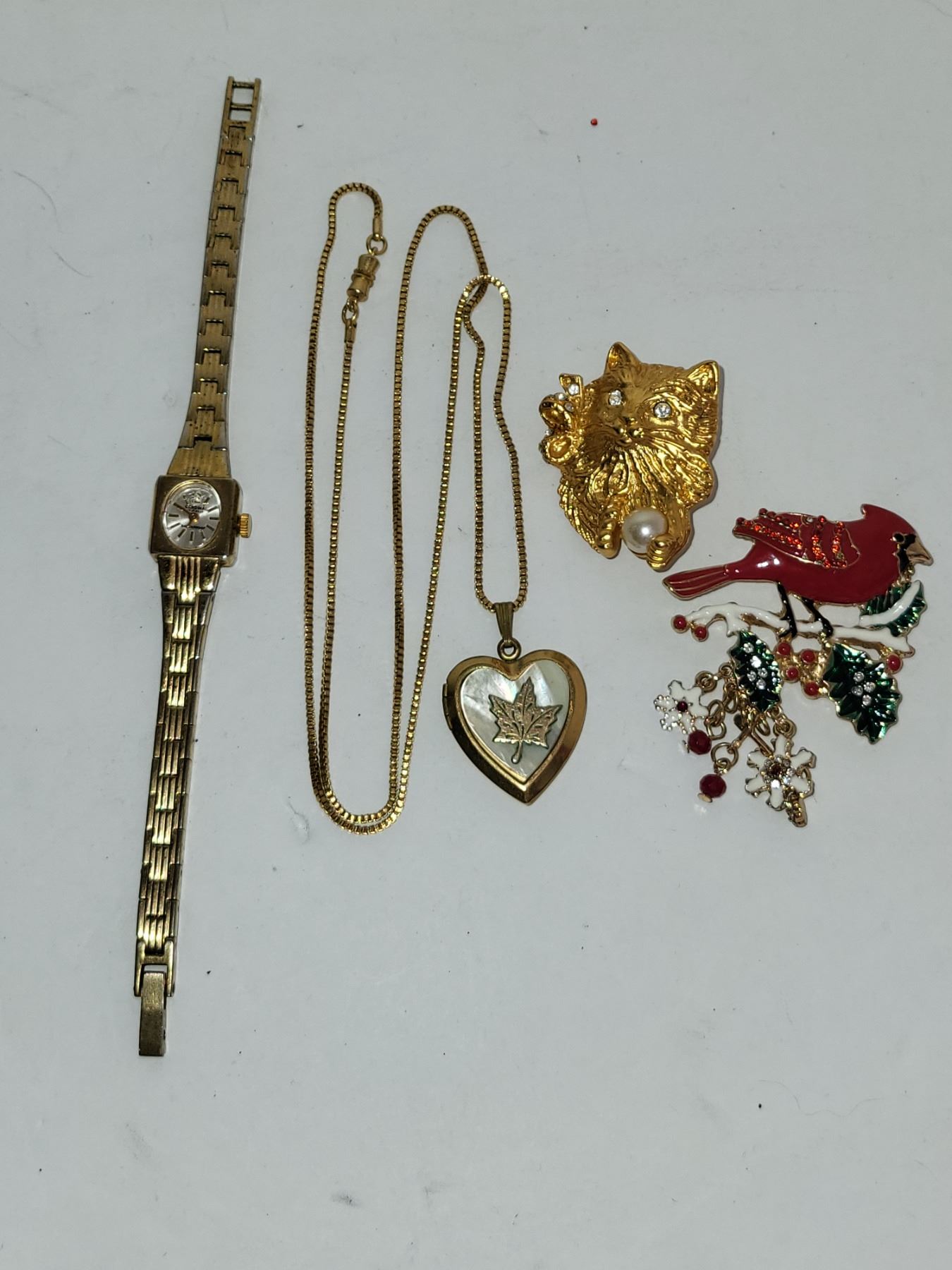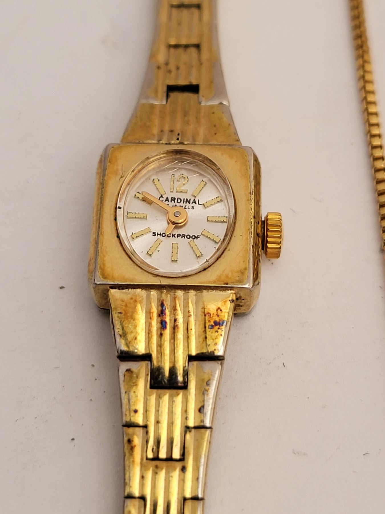 LOT OF MISC JEWELLERY INC CARDINAL 17 JEWEL LADIES WATCH SHOCKPROOF
