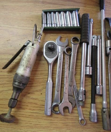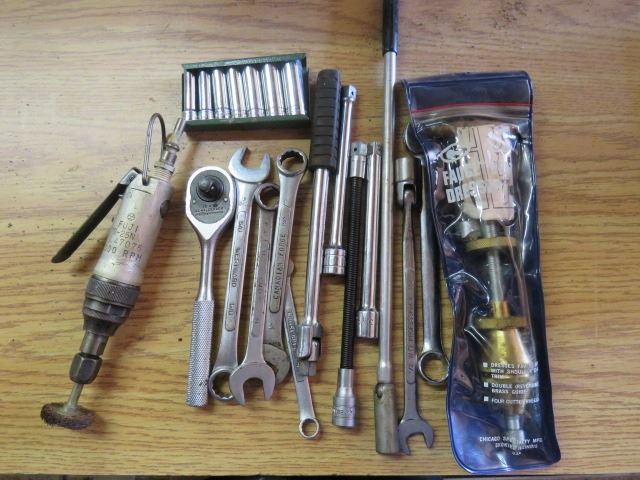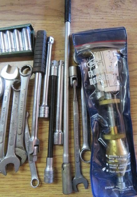 LOT OF MISC TOOLS (AIR TOOL, WRENCHES, SOCKETS, FAUCET SET DRESSER, ETC)