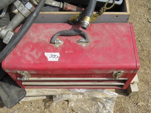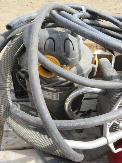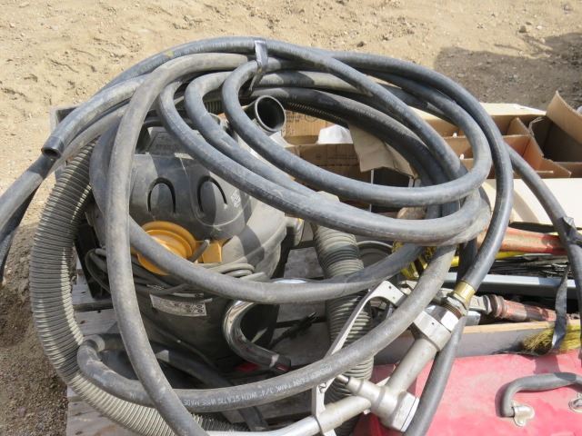 LOT OF MISC TOOLS (PUMP HOSE, FUEL PUMP HOSE, TOOL BOX, PIPE WRENCHES, PLUMBING SUPPLIES, VACUUM, ETC)
