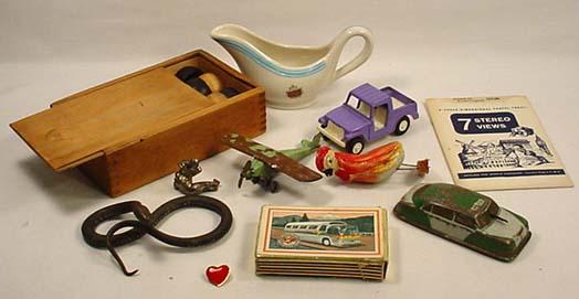 LOT OF MISC. TREASURES - Incl. Toy Cars, Bus line Playing Cards, Toy Plane, More!