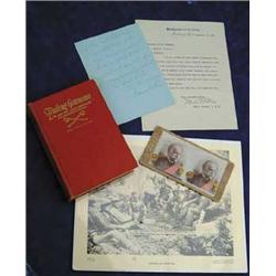 LOT OF MISCELLANEOUS MATERIAL MUCH OF WHICH RELATES TO APACHE WARRIOR GERONIMO. Including a couple of old magazines, a couple of books, one titled "Trailing Geronimo” by Antone Maddanobich, Troop F6-US Cavalry. Also included, is a reproduction of the photograph of Geronimo and Gen. Cook in 1886. A stereo front view of Gen. Nelson A..Miles, a short hand-written letter signed by Nelson A. Miles. Also, a typewritten letter to Gen. Alba Edwards on headquarters of the Army stationary dated December 23, 1896, signed by Nelson A. Miles. 4-50101