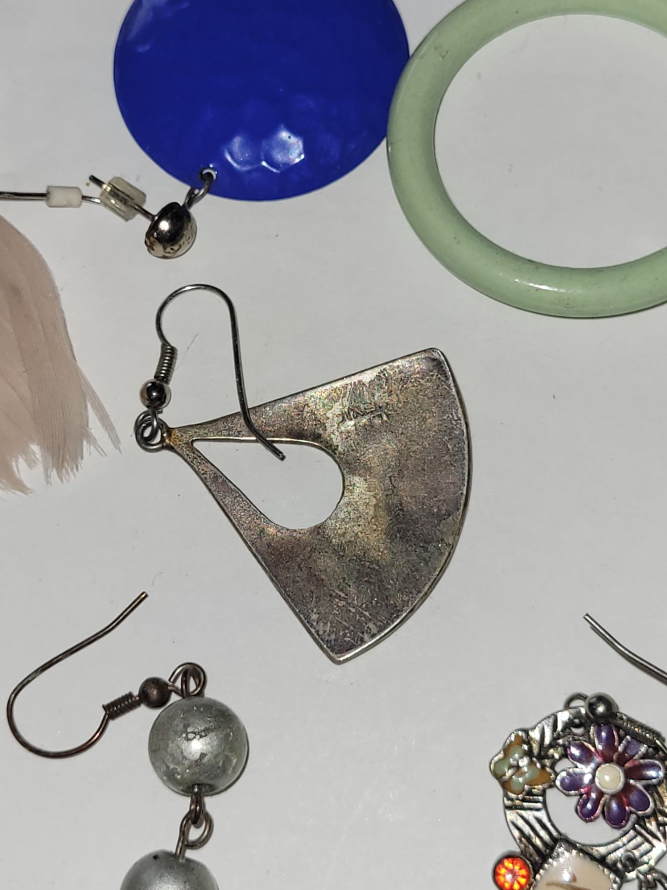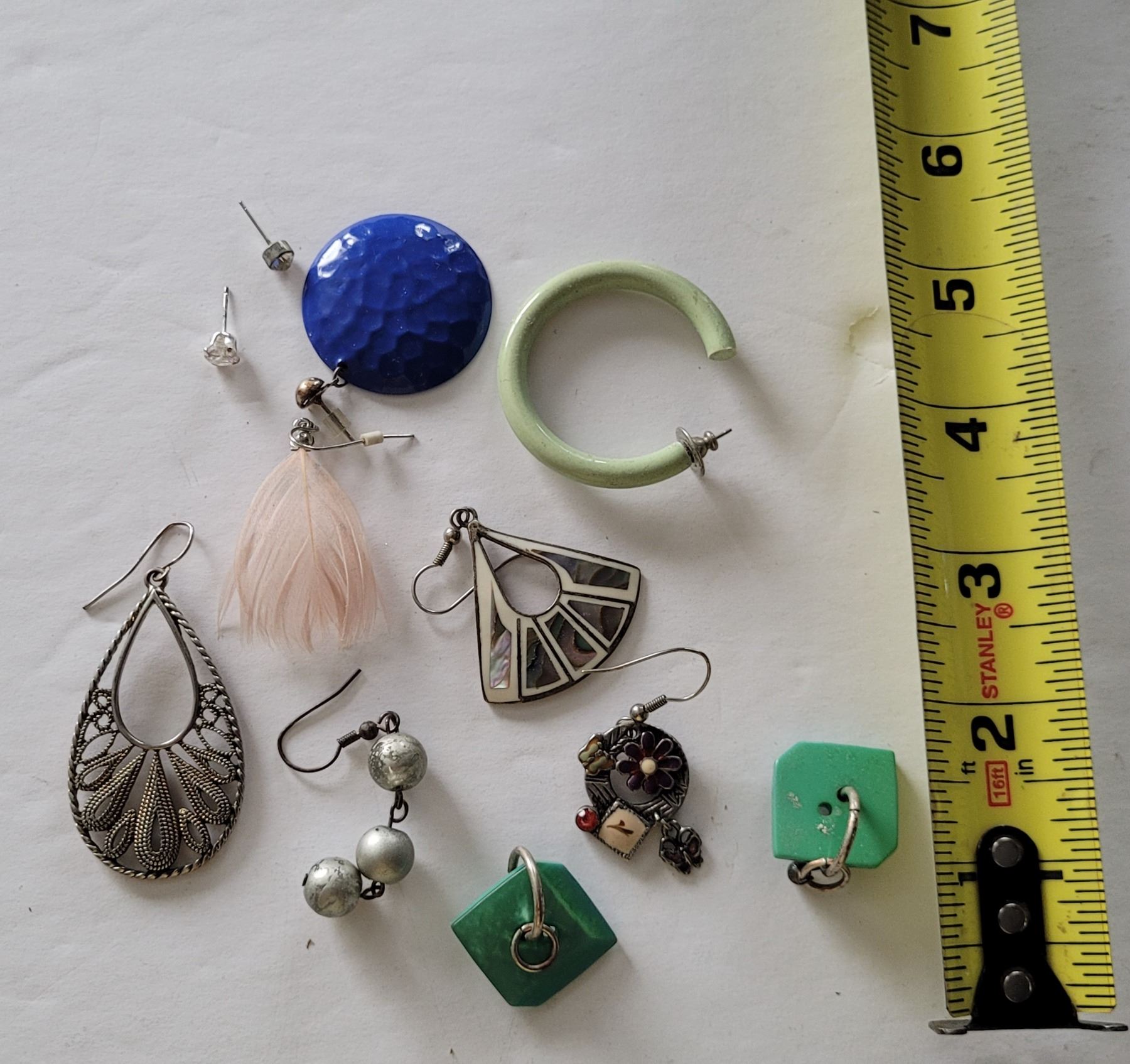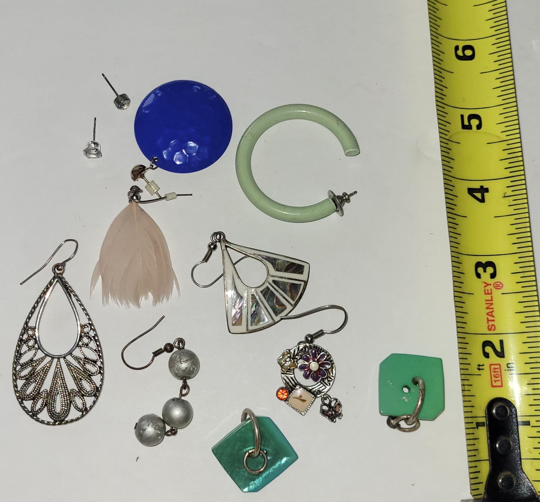 LOT OF MIX MATCHED EARRINGS ONE IS STERLING SILVER. WHAT YOU SEE IN THE LOT IS WHAT YOU WILL RECEIVE. THE ONE NOT MARKED 925 BUT YOU CAN TELL BY THE WEIGHT AND TARNISHING IT IS ABALONE AND STERLING SILVER. FROM ESTATE. SEE PICTURES AND JUDGE FOR YOURSELF!
