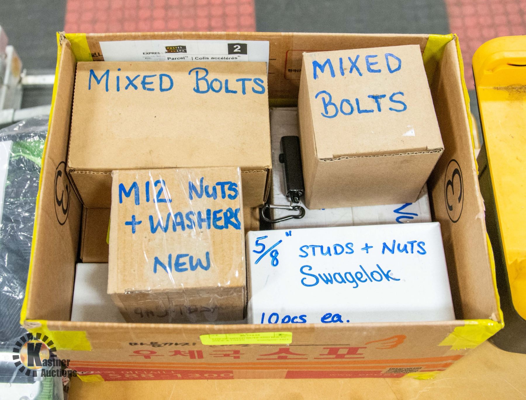 LOT OF MIXED NUTS AND BOLTS (NEW & USED)