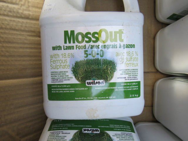 LOT OF MOSS OUT WITH LAWN FOOD (10 BOXES) * 5-0-0* (18.6% FERROUS SULPHATE) *NOS*