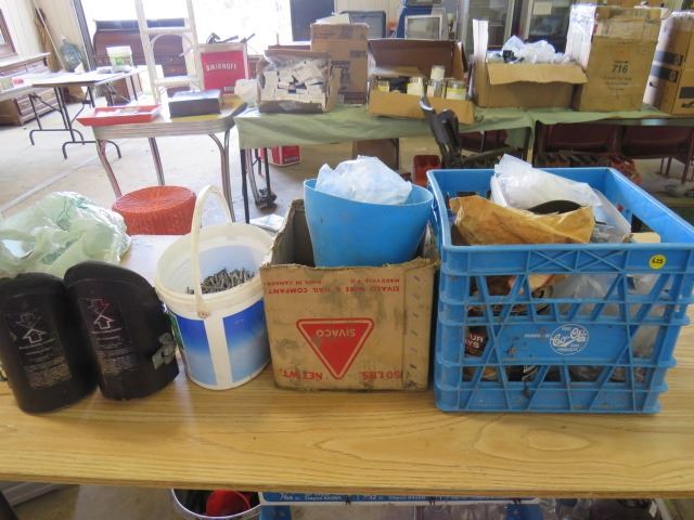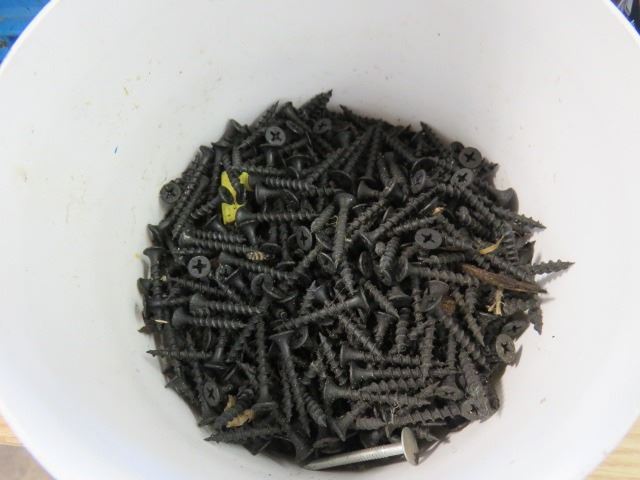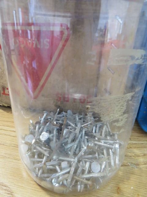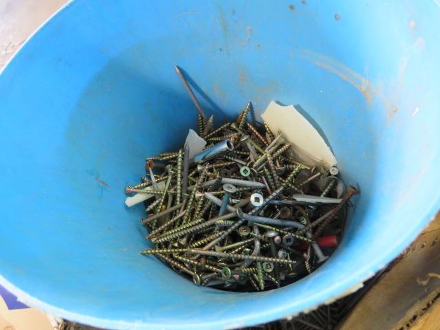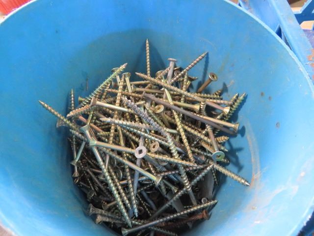 LOT OF NAILS AND SCREWS (DECK SCREWS, ROOFING NAILS, GRAVITY GUIDING SYSTEM, ETC)
