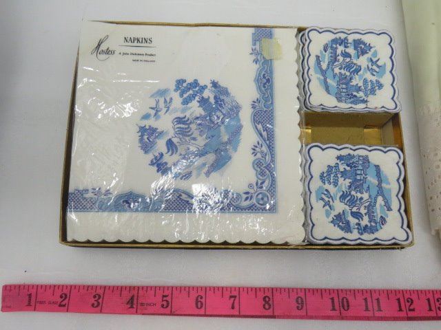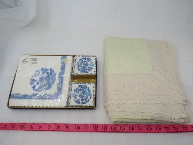 LOT OF NAPKINS AND LACE EDGED TABLE CLOTH