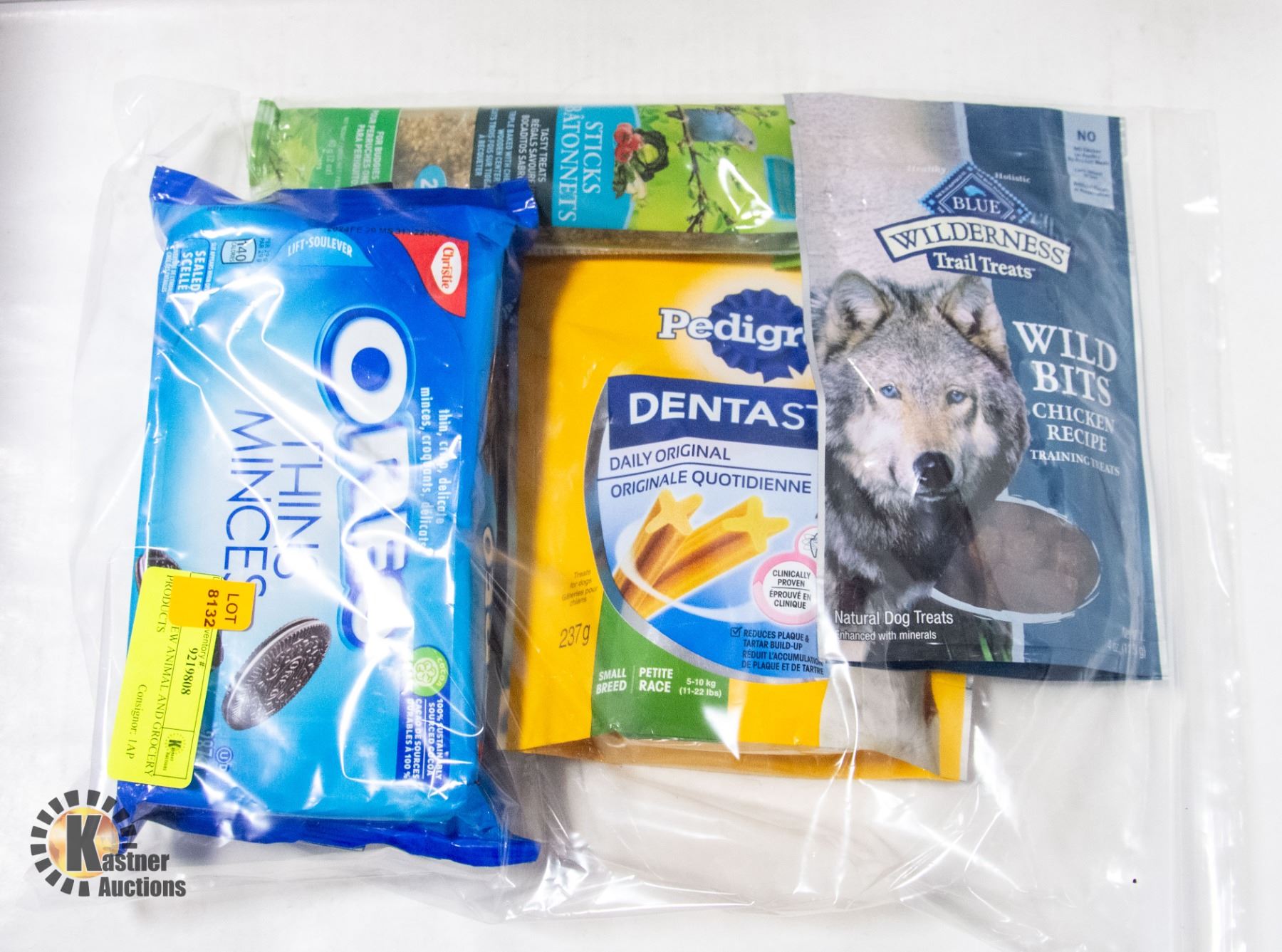 INCLUDES BIRD TREAT, DOG TREATS, AND OREOS. AMZ SES