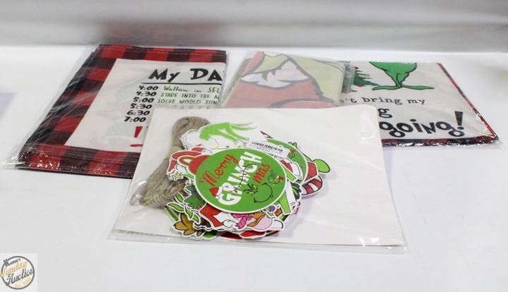 LOT OF NEW GRINCH DÉCOR, FRONT DOOR COVER
