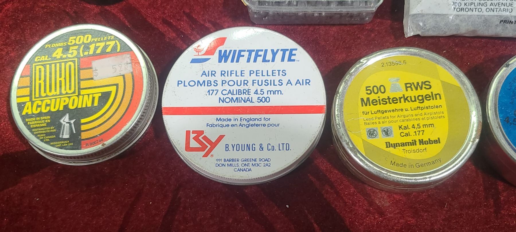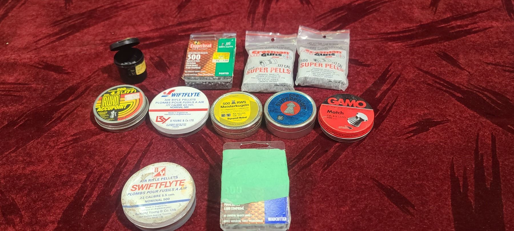 LOT OF NIE PACKS/TINS OF .177CAL AND TWO PACKS OF .22CAL (5.5MM)