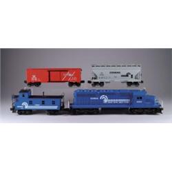 LOT OF NINE PIECE LIONEL CONRAIL TRAIN SET. Lionel locomotive SD40 lettered “CONRAIL,” “8200.” Also includes eight freight cars, three of which have been double stamped, most likely a factory correction. All are lettered “CONRAIL.” CONDITION: All are in near excellent condition. EC 1-2055-932 (250-350)