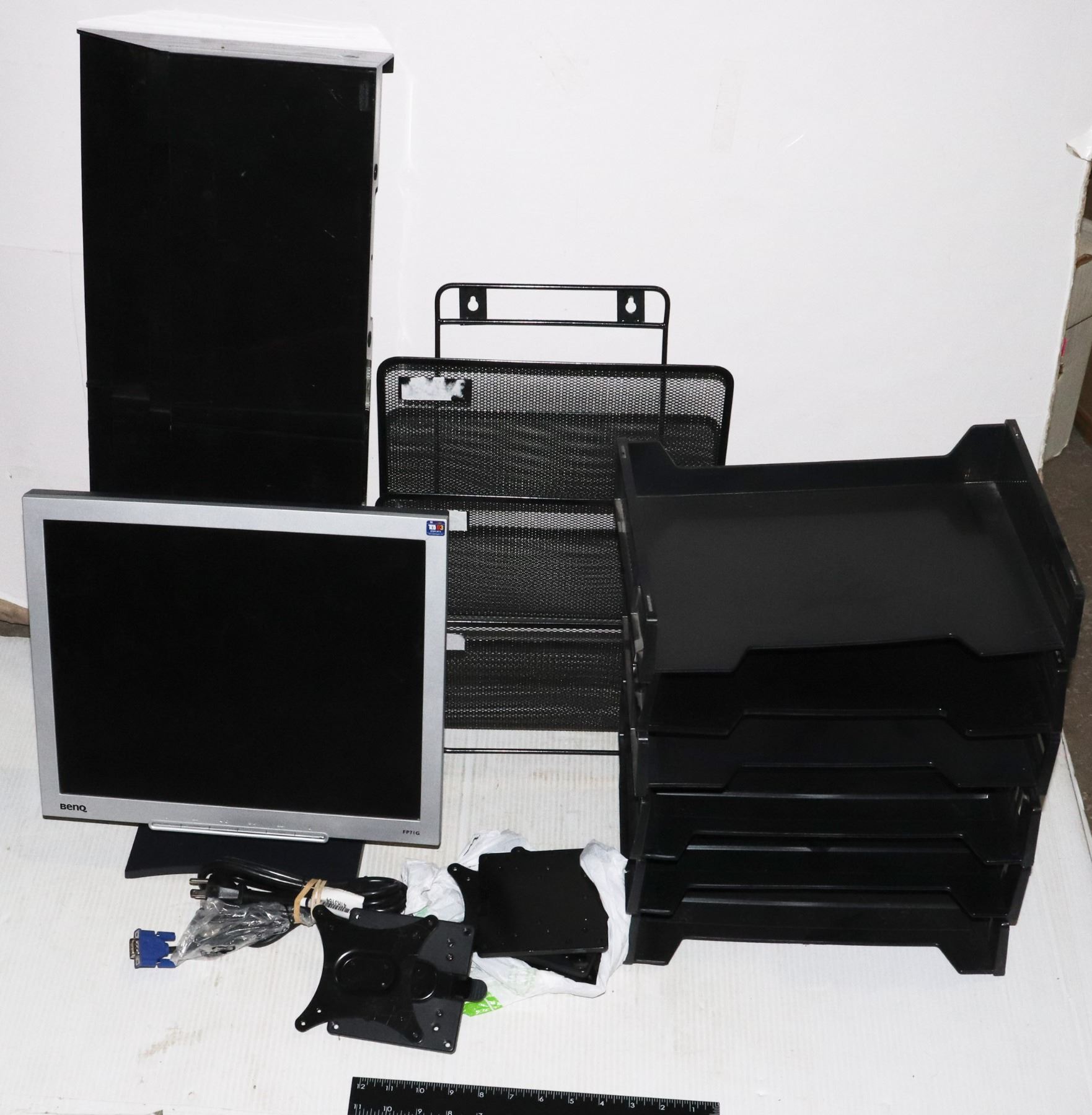 BENQ MONITOR WITH POWER CORD/ 2 WALL MOUNTED FILE ORGANIZERS AND STACKABLE ORGANIZER