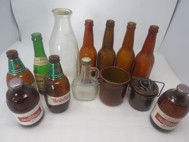 LOT OF OLD BOTTLES (2 FULL OF BEER)