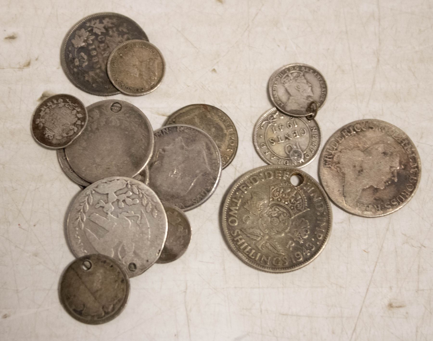 LOT OF OLD VARIOUS SILVER WORLD COINS, 57 GRAMS