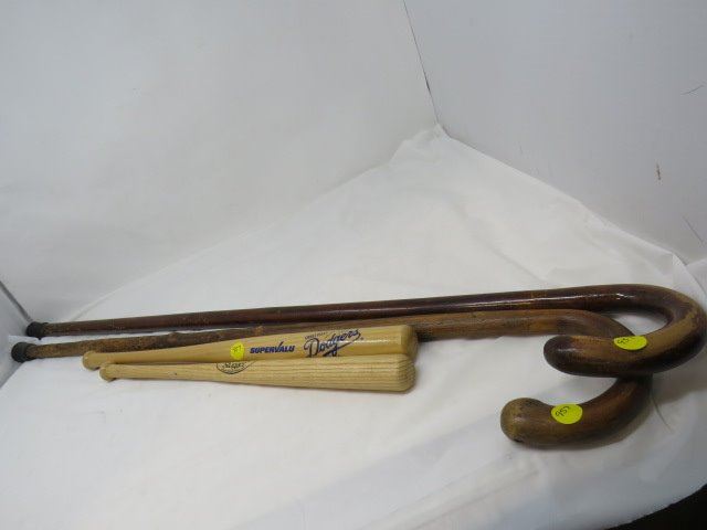LOT OF ONE GREAT FALLS DODGERS & ONE LOUISVILLE SLUGGER MINI BASEBALL BAT, & TWO CANES