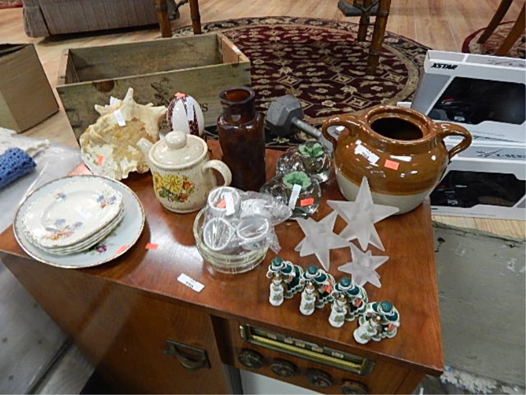 LOT OF ORNAMENTS BRASS POT - SHELL - ETC