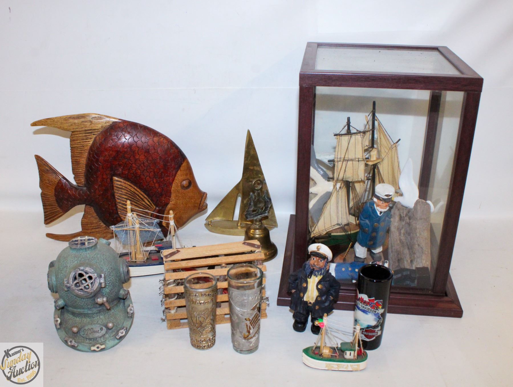 LOT OF PACIFIC FIGURES INCLUDES BRASS BOAT, MODEL