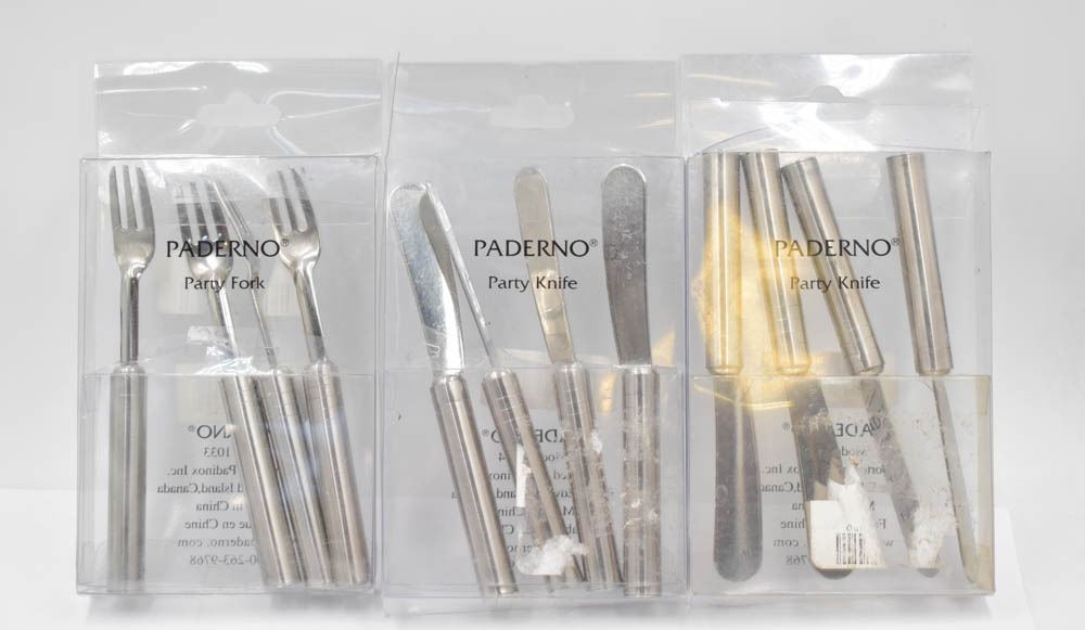 LOT OF PADERNO PARTY UTENSILS IN BOXES