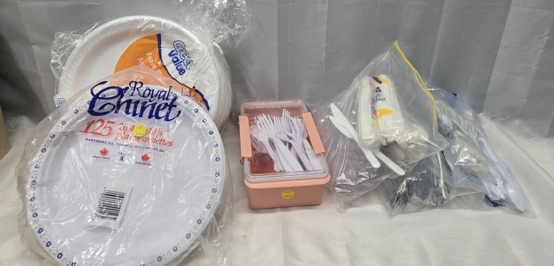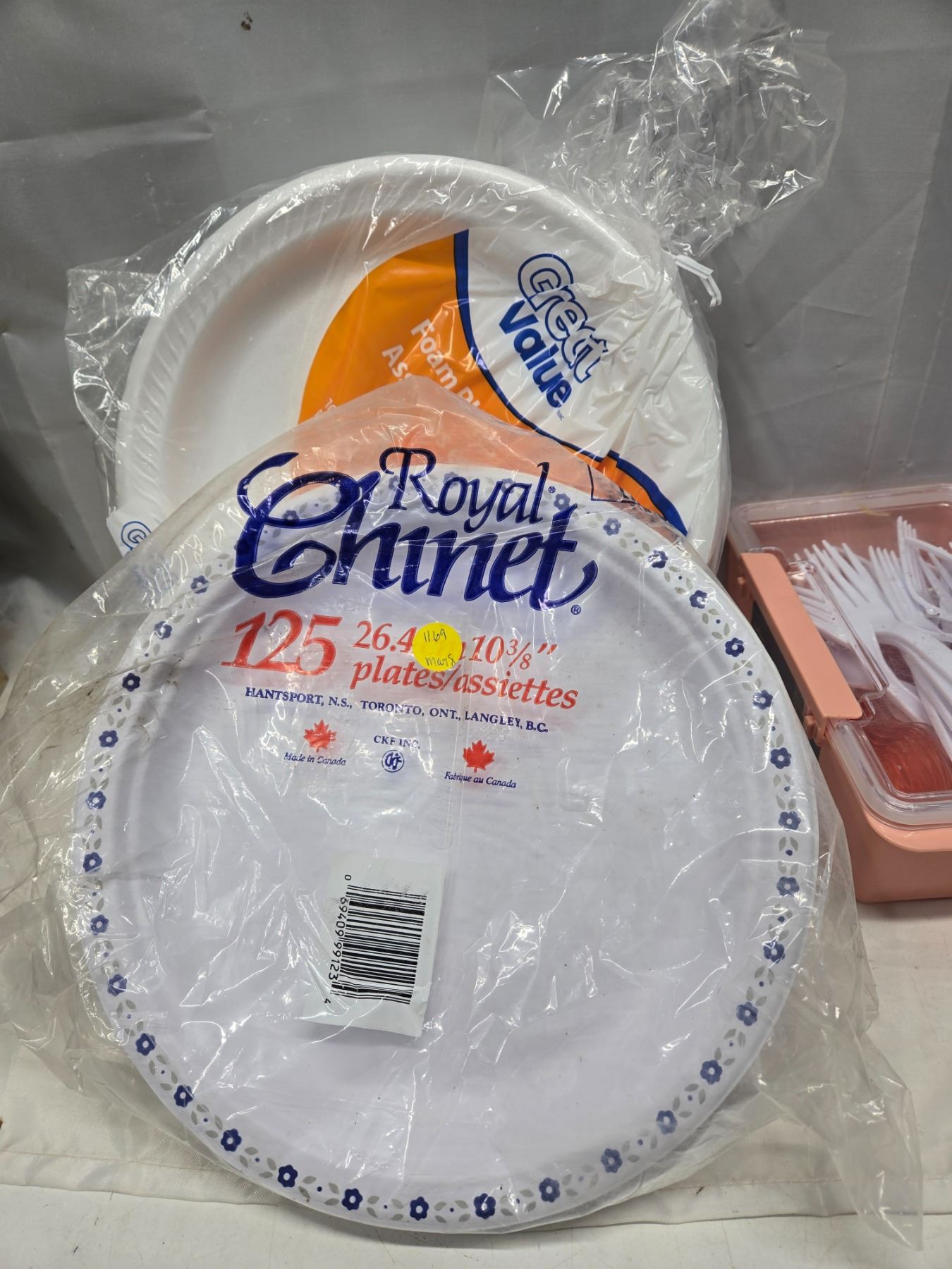 LOT OF PAPER PLATES & PLASTIC CUTLERY
