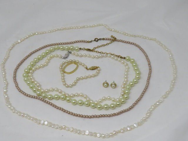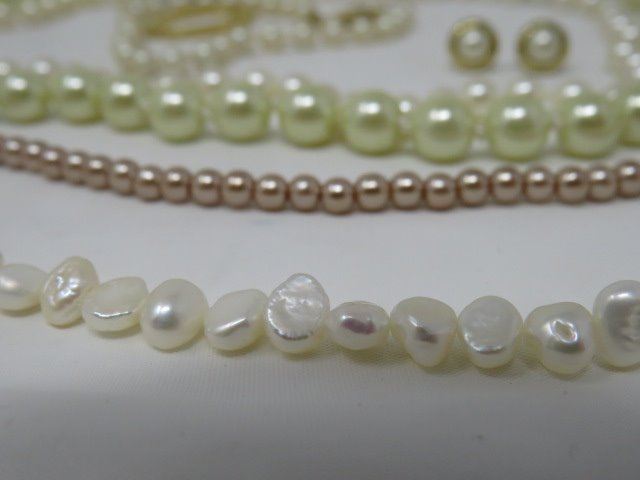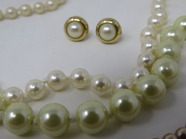 LOT OF PEARL LIKE NECKLACES X4 & EARRINGS