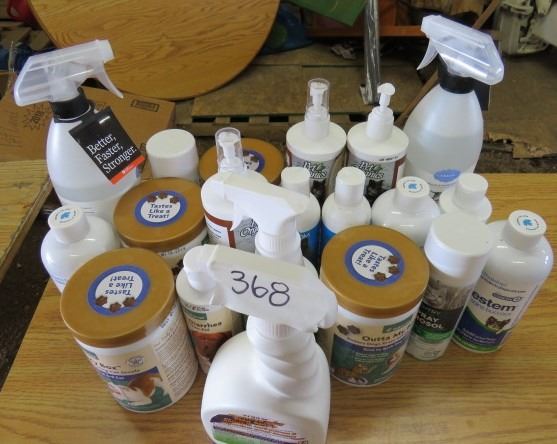 LOT OF PET ITEMS (NO DIG FLEA SPRAY, OUTDOOR REPELLANT, SHAMPOO, ETC) *NOS*