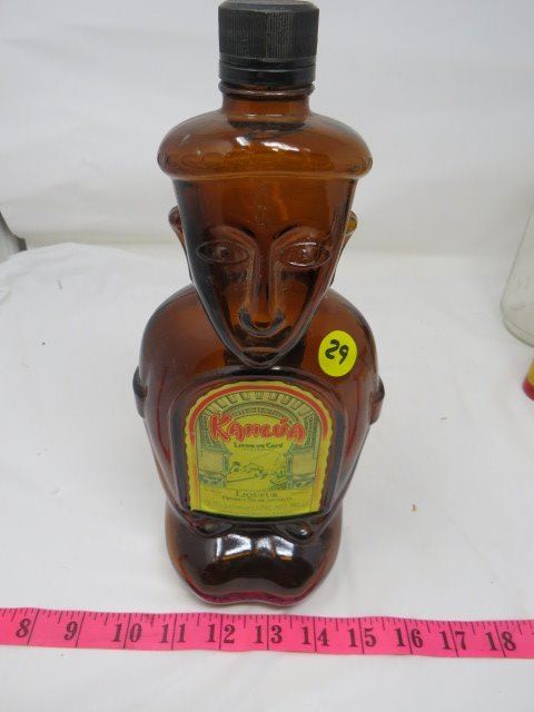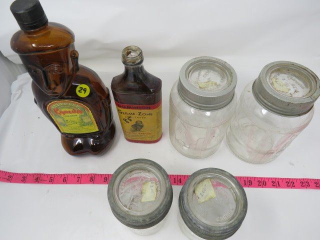 LOT OF PINT, 2 QUART NABOB JARS & LIQUOR BOTTLES
