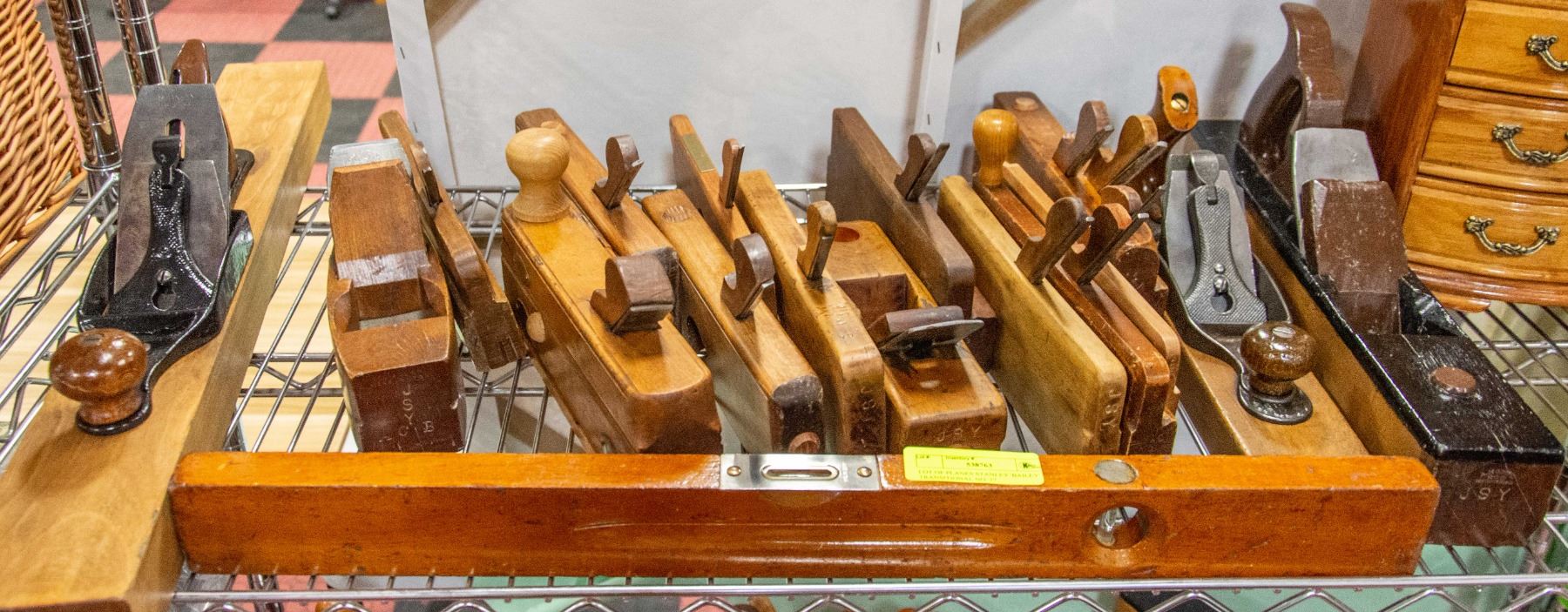 STANLEY RULE AND LEVEL CO. NO. 32 TRANSITIONAL, A. MONTY 16" JACK PLANE, OHIO PLANES (AC BARTLETTS) 5/16 GROOVING, 8" SMOOTHING 2-1/8" BLADE, RABBET W/ ADJ. SOLE FENCE 9-1/2" L, AUBURN TOOLS 9-1/2" L RABBET, MOIR GLASGLOW 9-1/2" L, 1-3/8" BLADE, MARPLES & SONS SHEFFIELD, 1/4" SKEWED, 7/8" STRAIGHT BLADE SHOULDER, MATHIESON & SON NO. 6 ROUND, VARVILL YORK NO. 10 ROUND, ATKIN & SONS SHEFFIELD NO. 10 ROUND, STANLEY HANDYMAN CANADA 24 IN. LEVEL, 8-3/4" MITRE PLANE 1-3/4" BLADE W/ FIRTH & SONS/NORFORK WORKS ON BLADE, MATHIESON & SON) NO. 2, 3/4 TONGUE, AND A. MONTY 1-1/4" NO. 225 NOSING