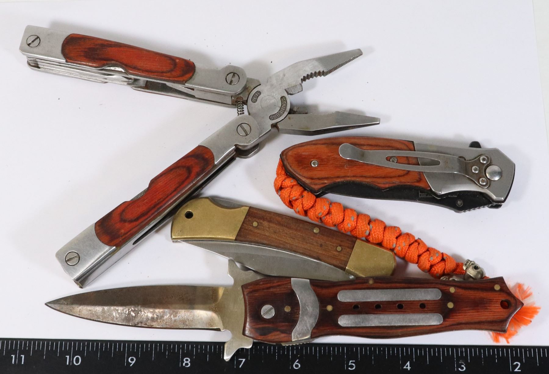 3 POCKET KNIVES AND 1 MULTI TOOL