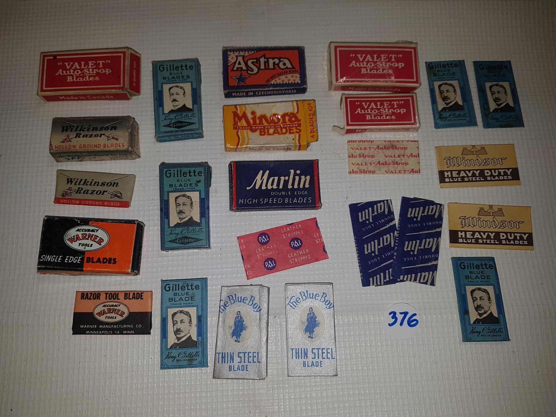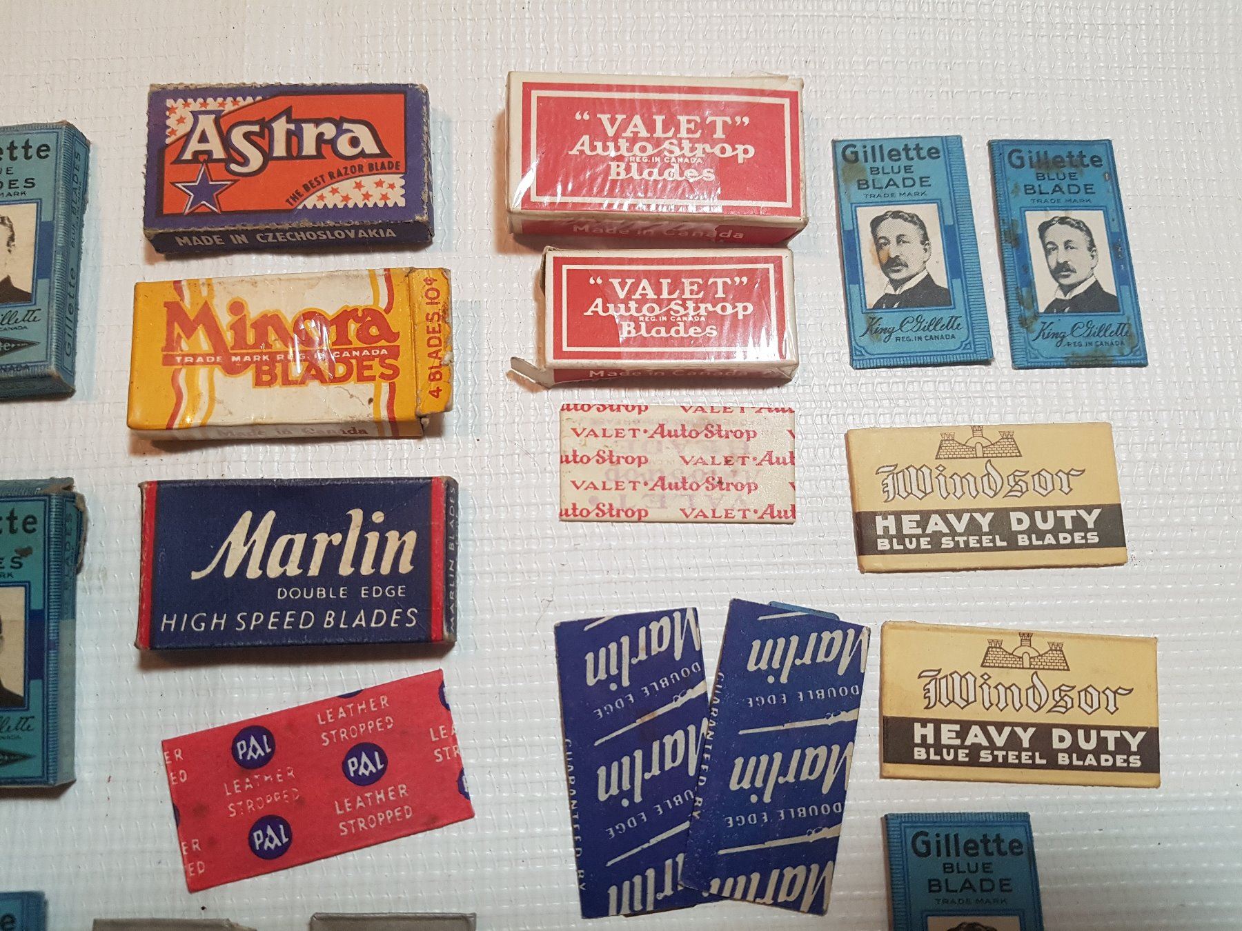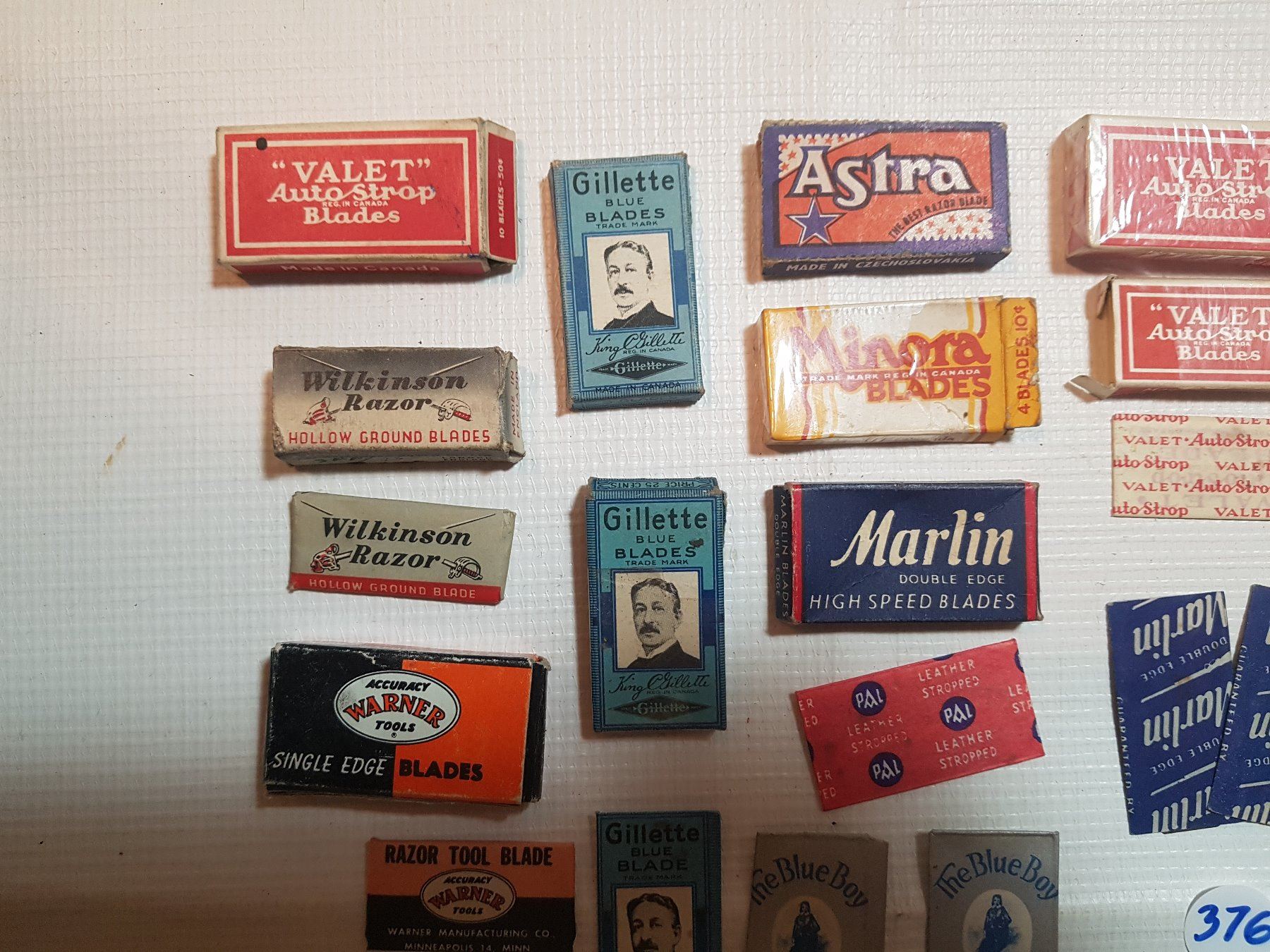 LOT OF RAZOR BOXES AND WRAPPERS (WITH RAZORS)