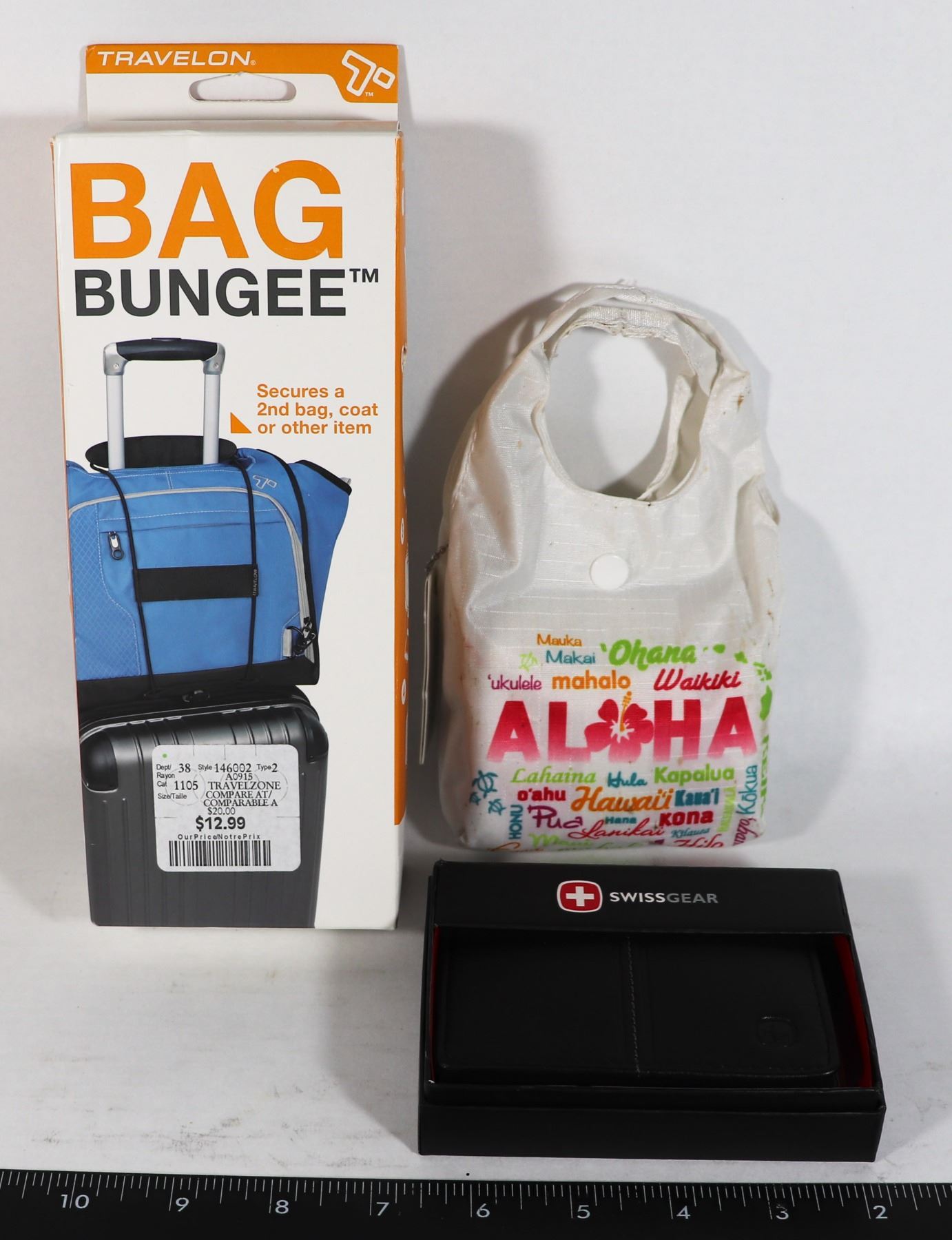 LOT OF REUSABLE BAG, WALLET AND BAG BUNGEE