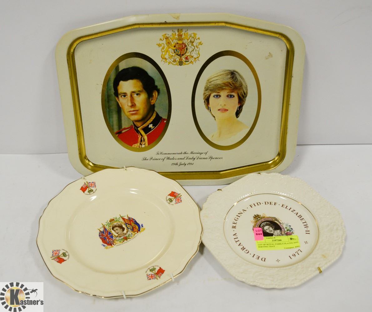 LOT OF ROYAL FAMILY PLATES AND SERVING TRAY