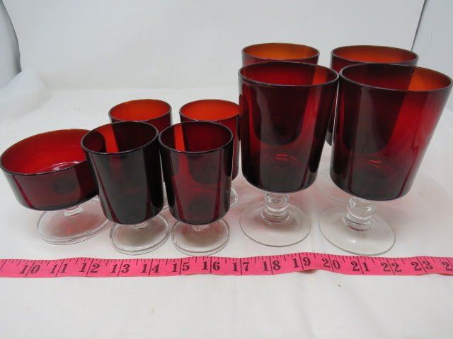 LOT OF RUBY GLASS CUPS (ASSORTED SIZES)