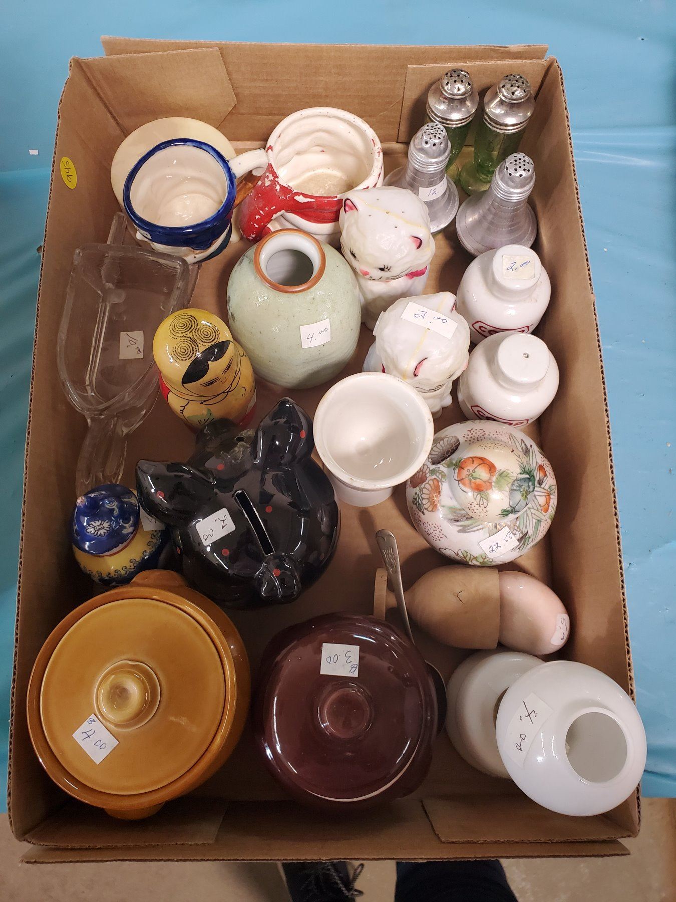 LOT OF SALT AND PEPPER SHAKERS & MISC GLASSWARE