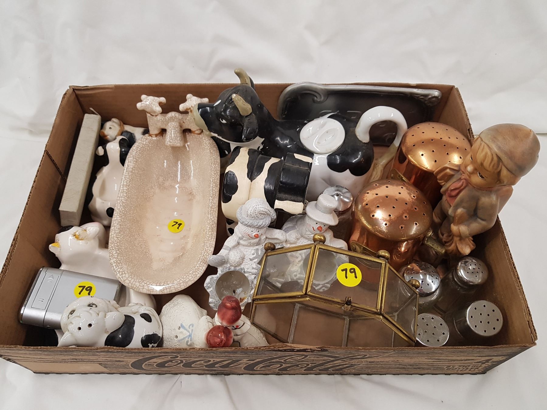 LOT OF SALT & PEPPER AND COW RELATED ITEMS