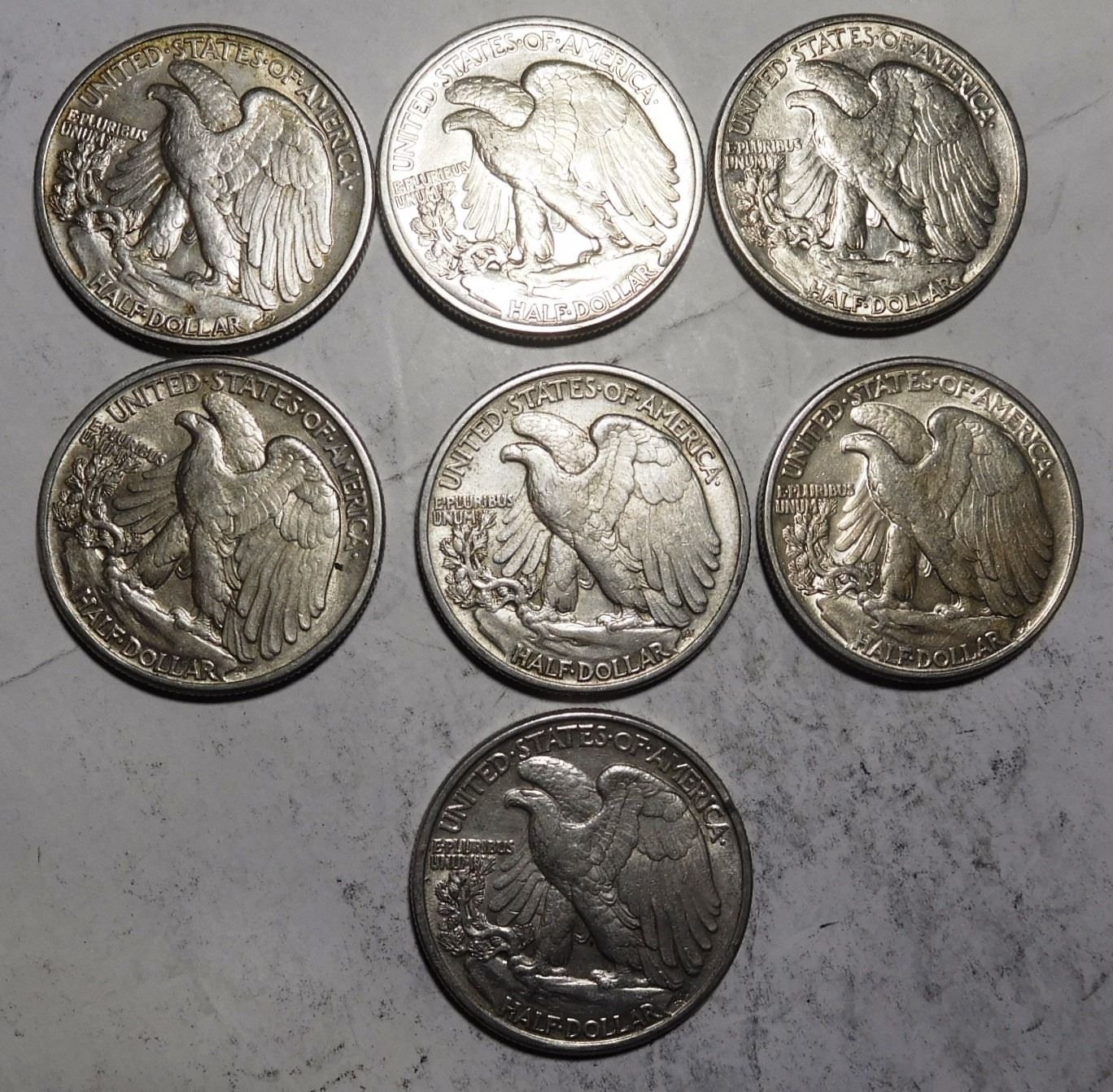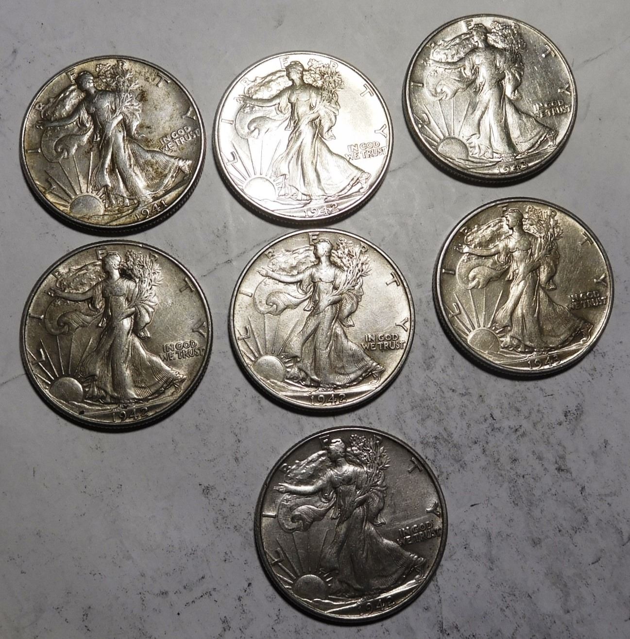 LOT OF SEVEN MIXED 1940'S WALKER HALF DOLLARS AU-58/UNC (7 COINS)