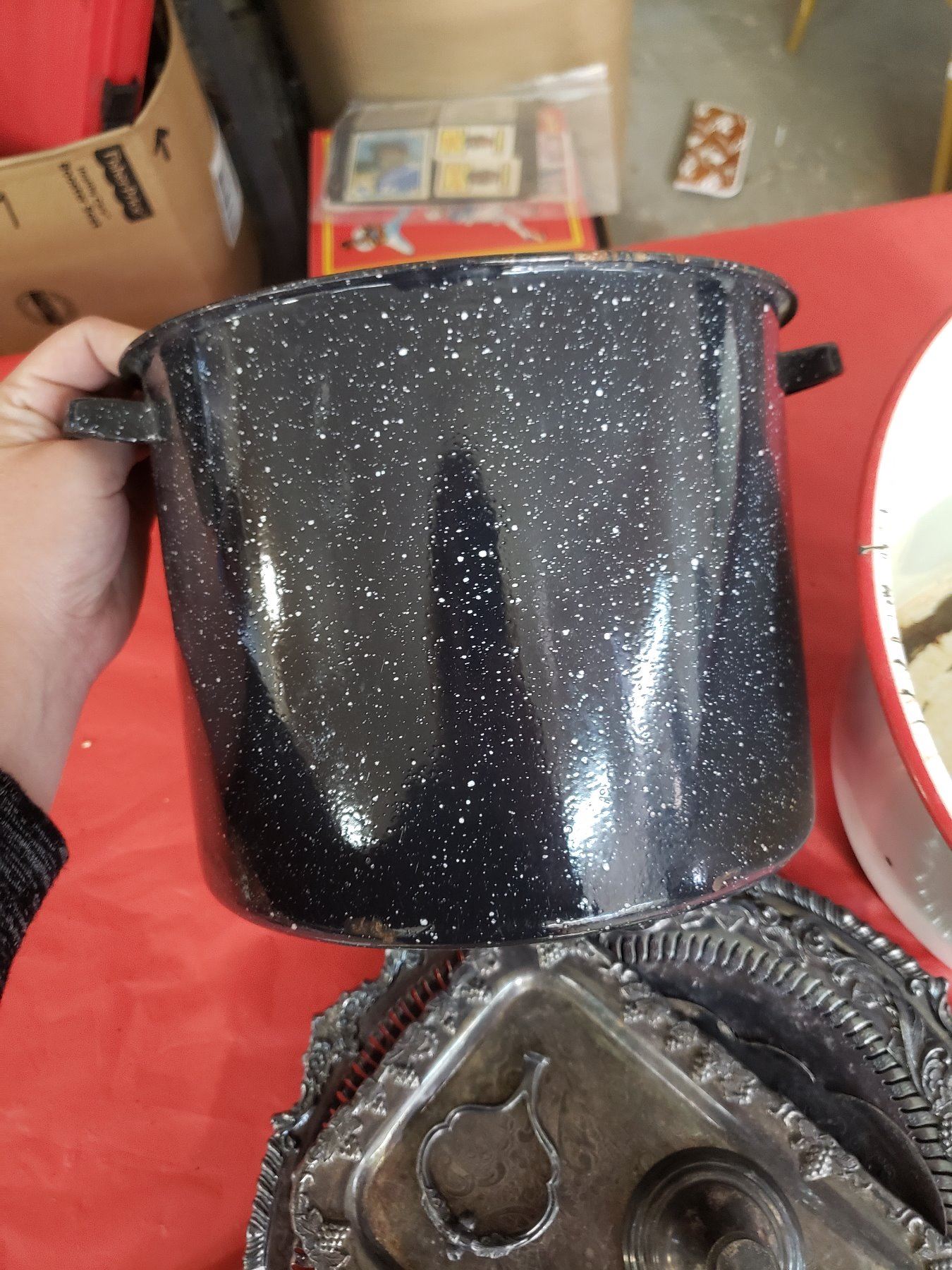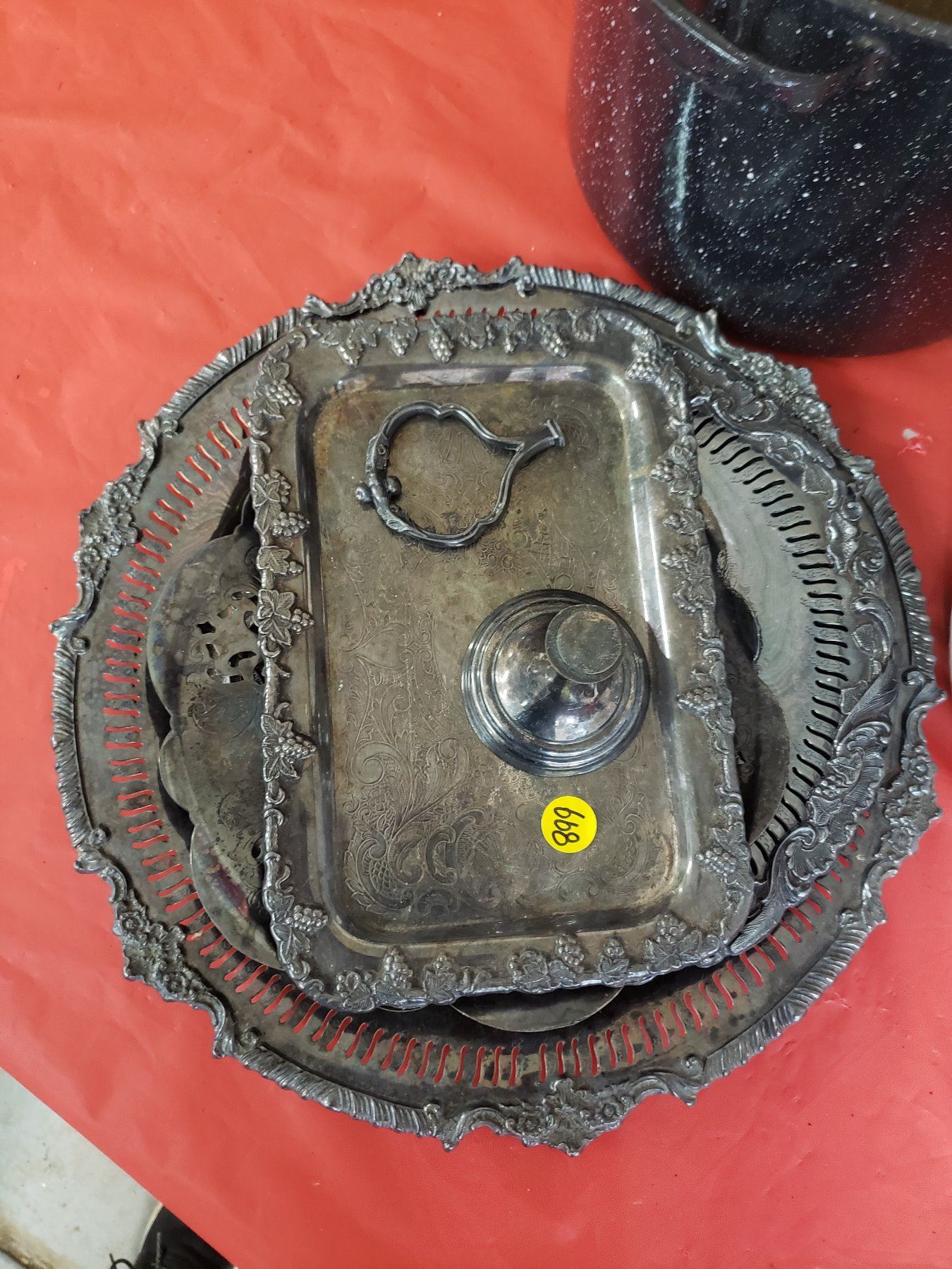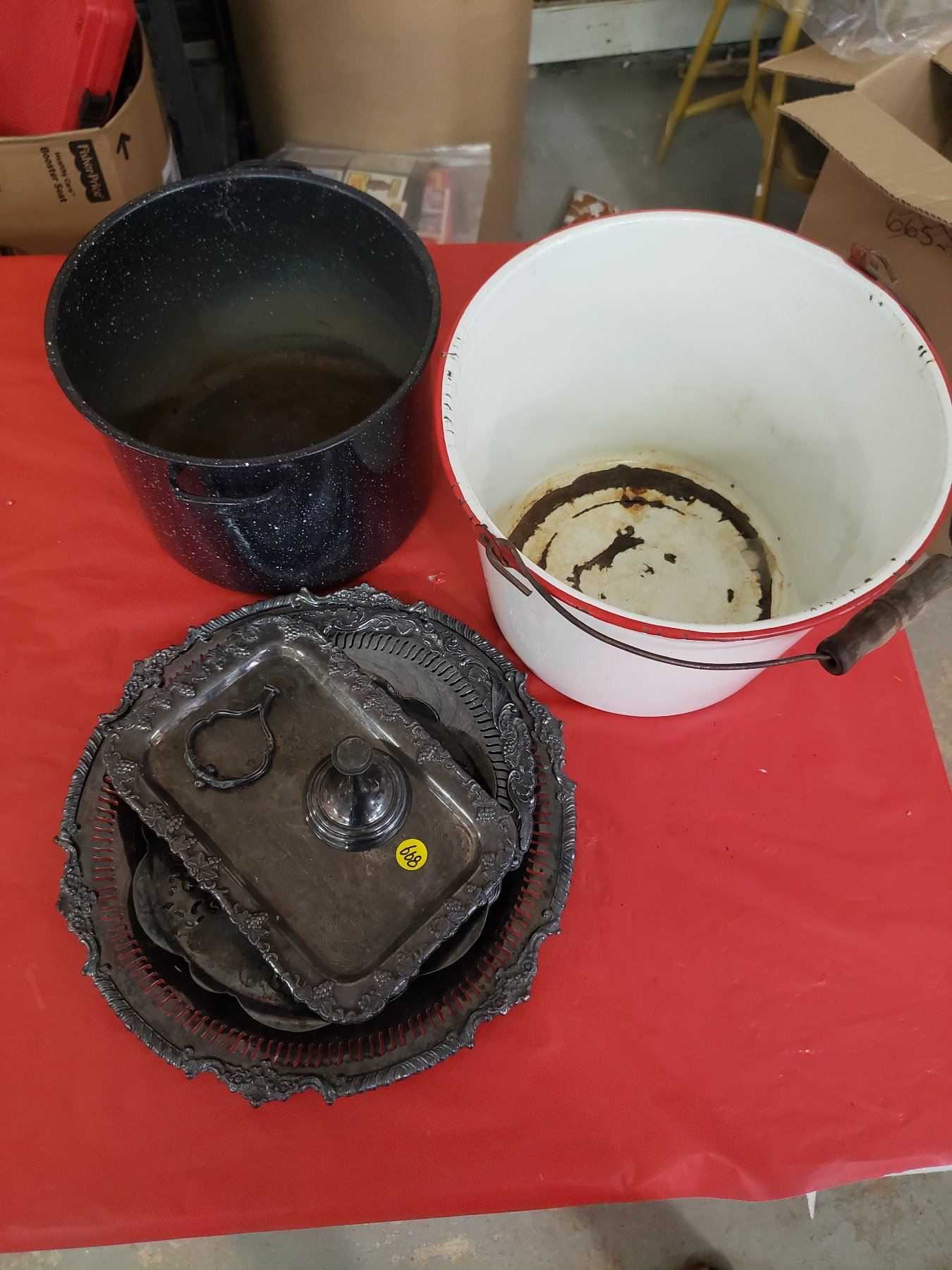 LOT OF SILVER PLATE ITEMS (2 ENAMEL PAILS)